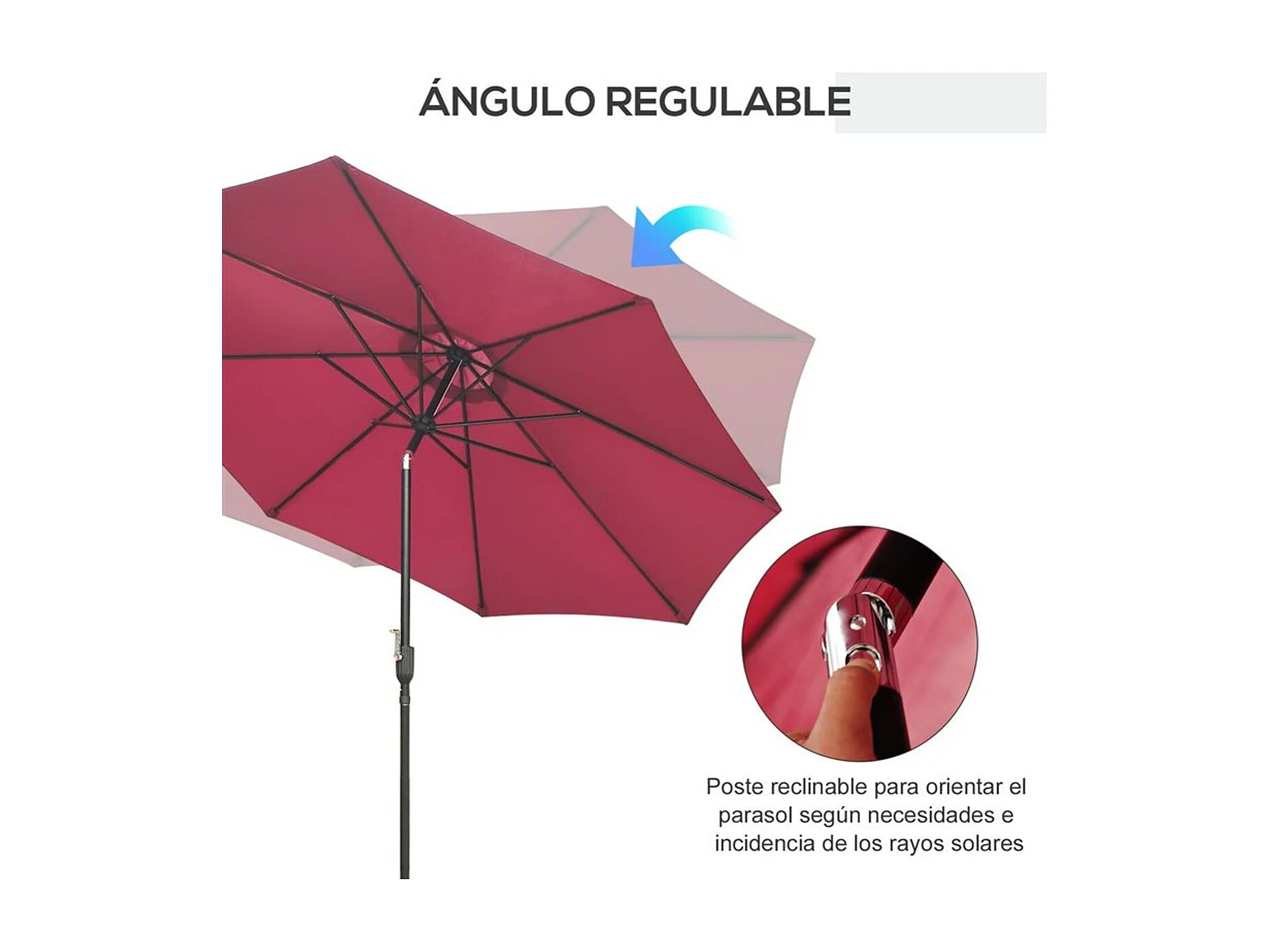 Sombrilla de jardín con palo de acero rojo burdeos 300x230cm