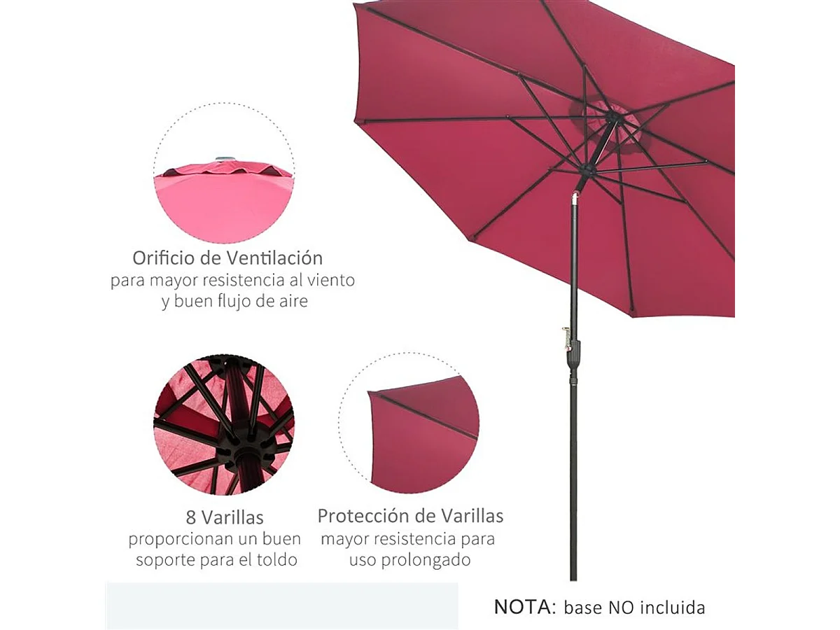 Sombrilla de jardín rojo vino 295x295x250 cm Outsunny