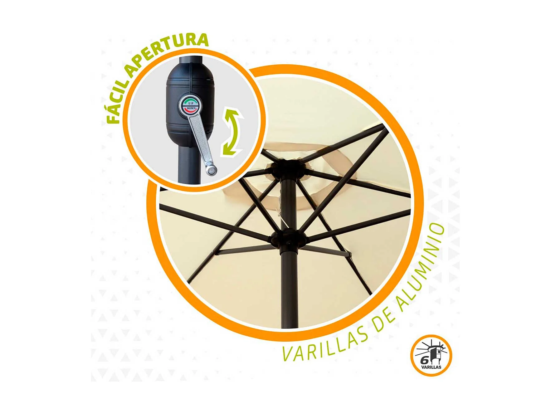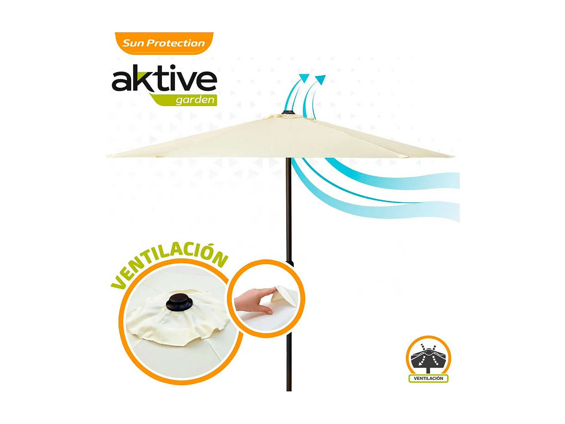Sombrilla de jardín Aktive con manivela + ventilación beige Ø300 cm