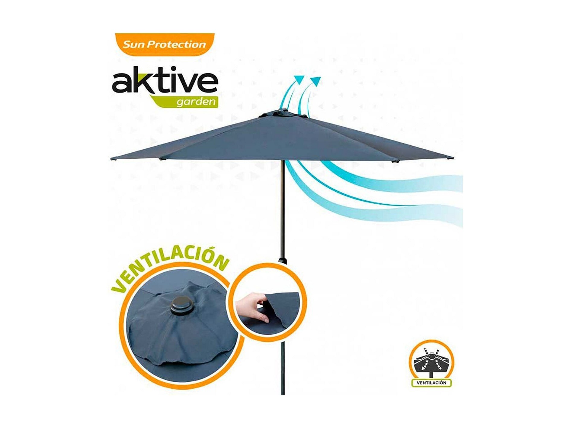 Sombrilla de jardín Doubert ventilación + doble polea antracita Ø48 mm