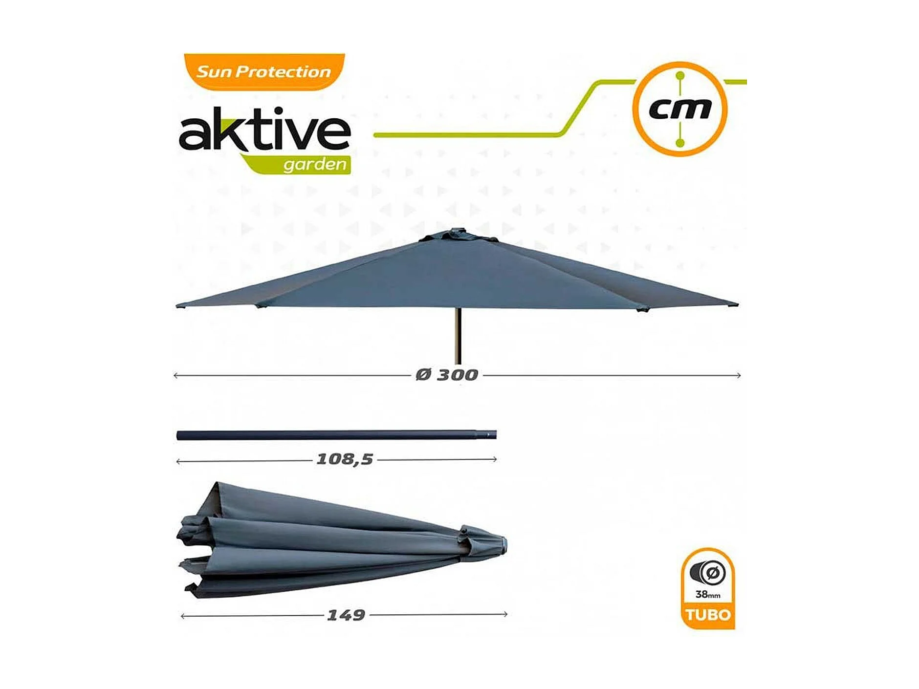El indispensable verano: Parasol inclinable en color gris claro + funda anti-UV + base de cemento de 25Kg