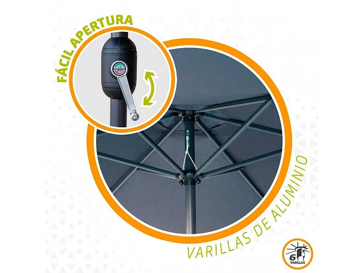 Sombrilla de jardín FLOKS con protección UV Gris Oscuro peso 2,8 kg dimensiones 200x123x235 cm