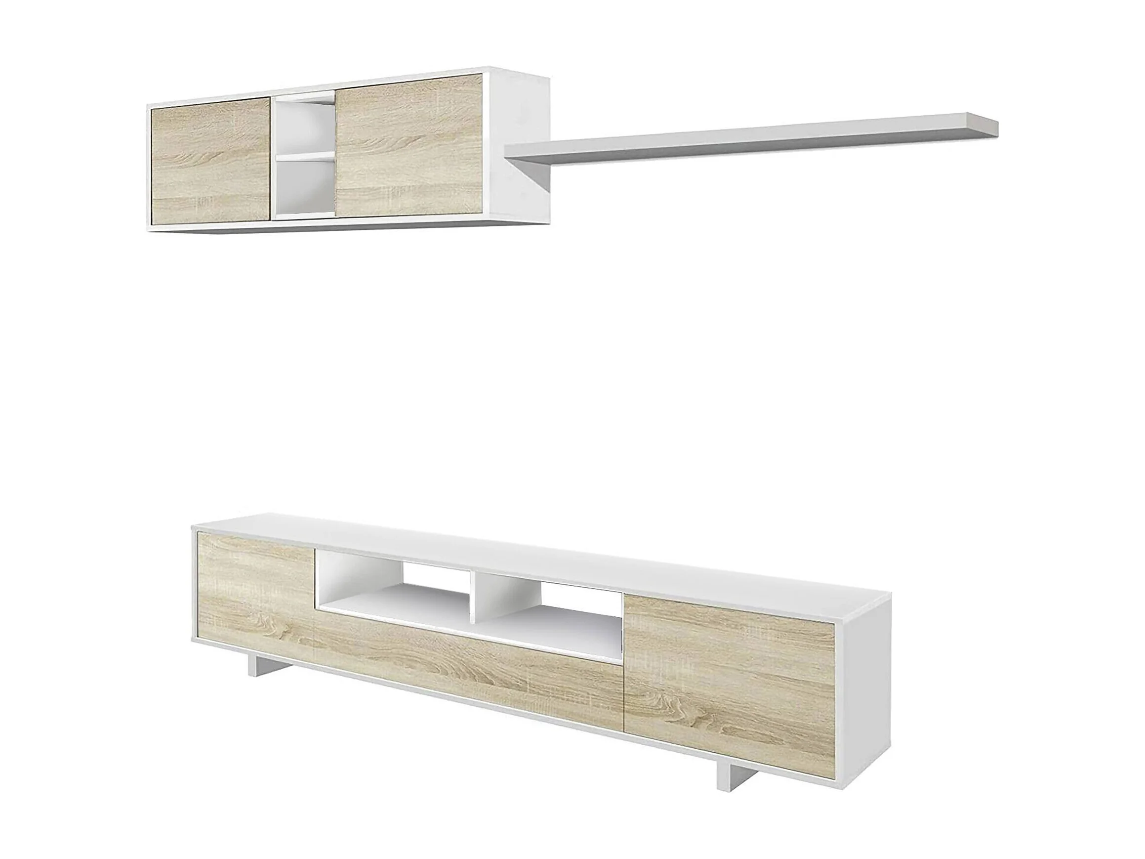 Pared equipada Dafanti, Mueble de tv para salón, Composición del juego de sala, Juego de salón con mueble alto, 260x41h46 cm, Blanco brillo y roble