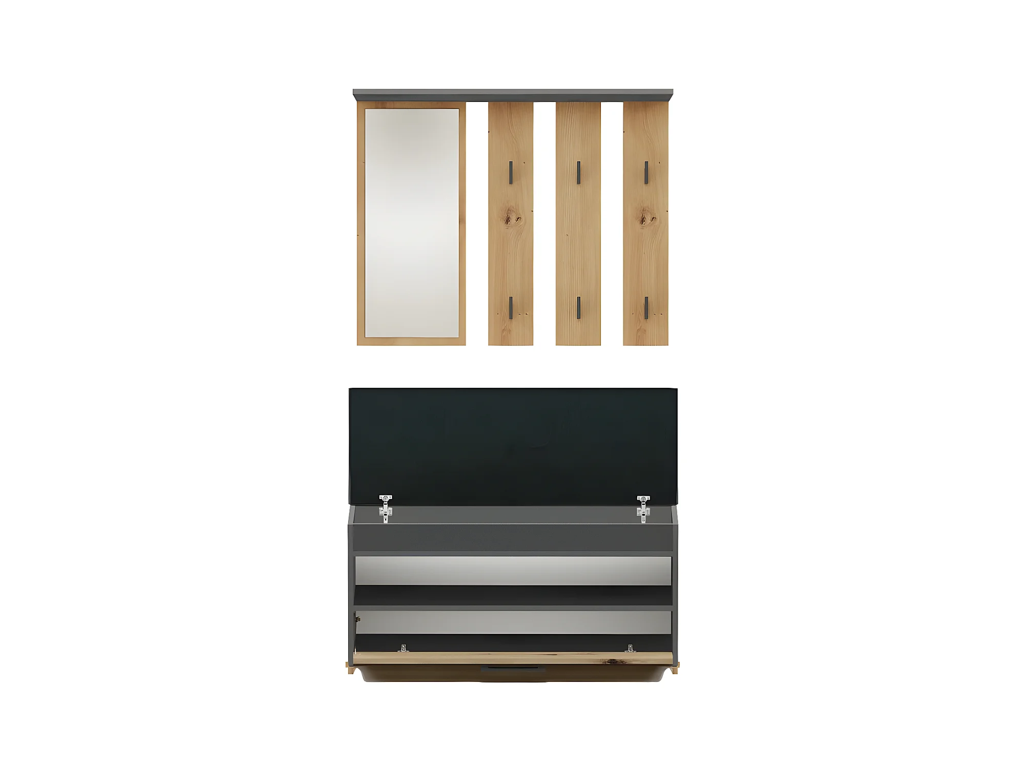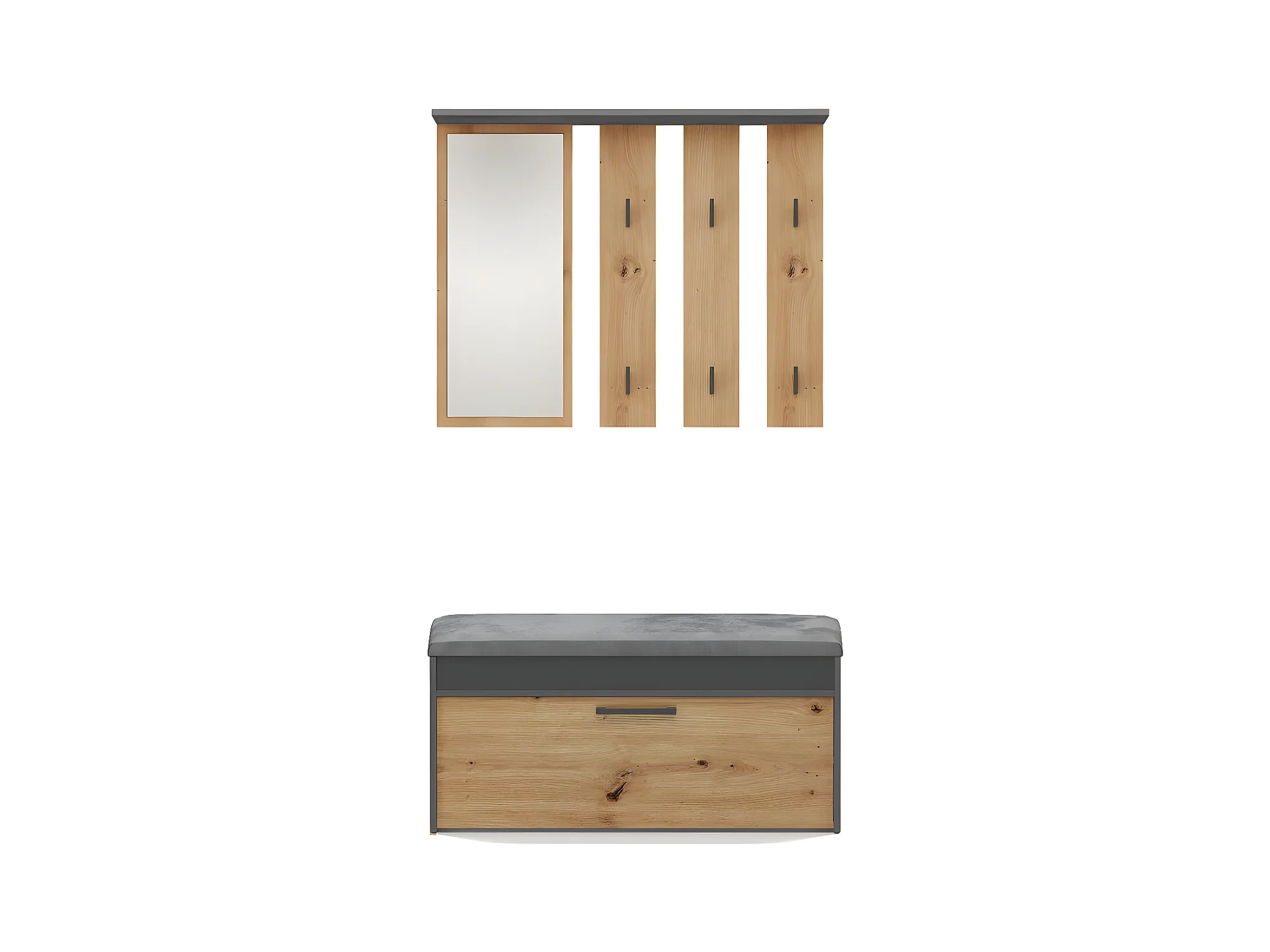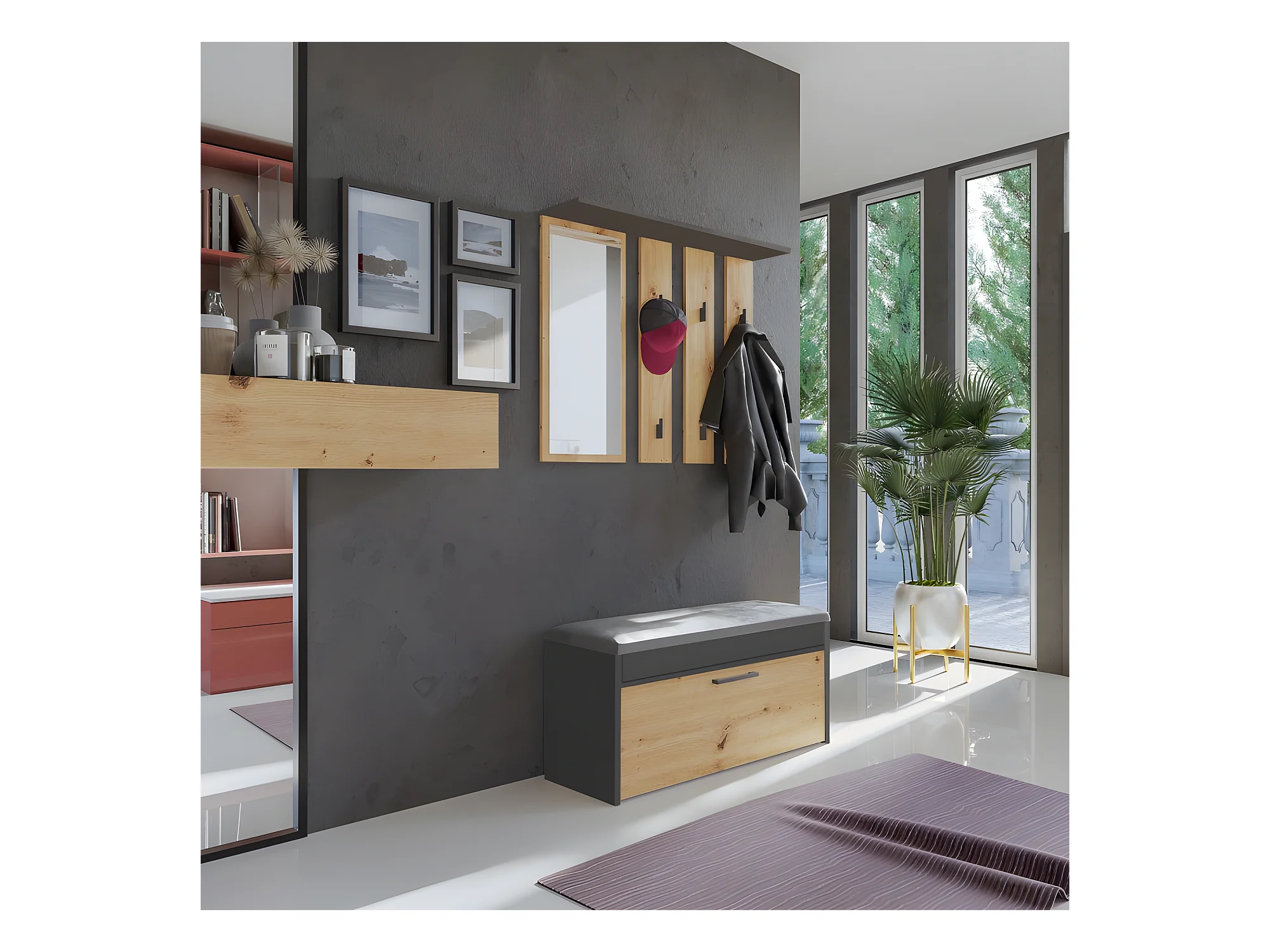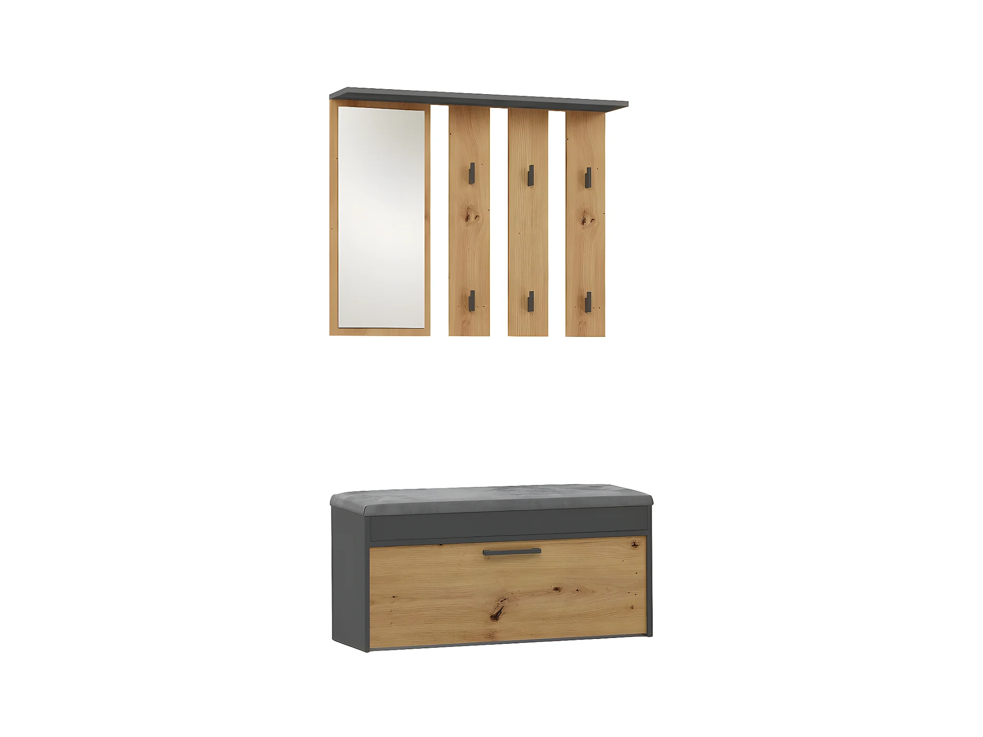 Conjunto pasillo Hartford 277, 186x124x46cm, Espejo, Grafito, Aglomerado laminado|Tapiz
