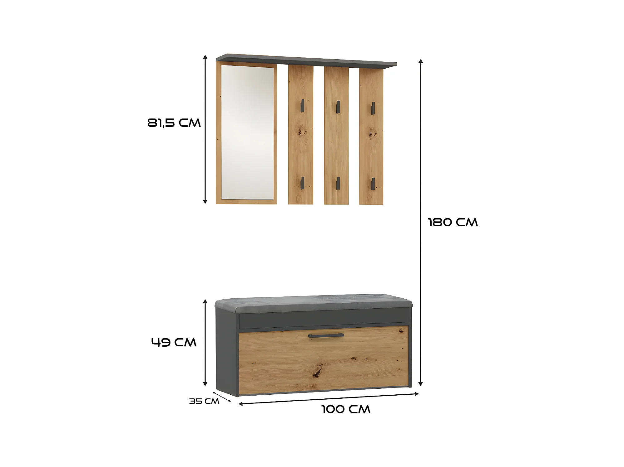PARMI - Armario de recibidor - Armario de recibidor con banco y espejo - Perchero Colgador de pared