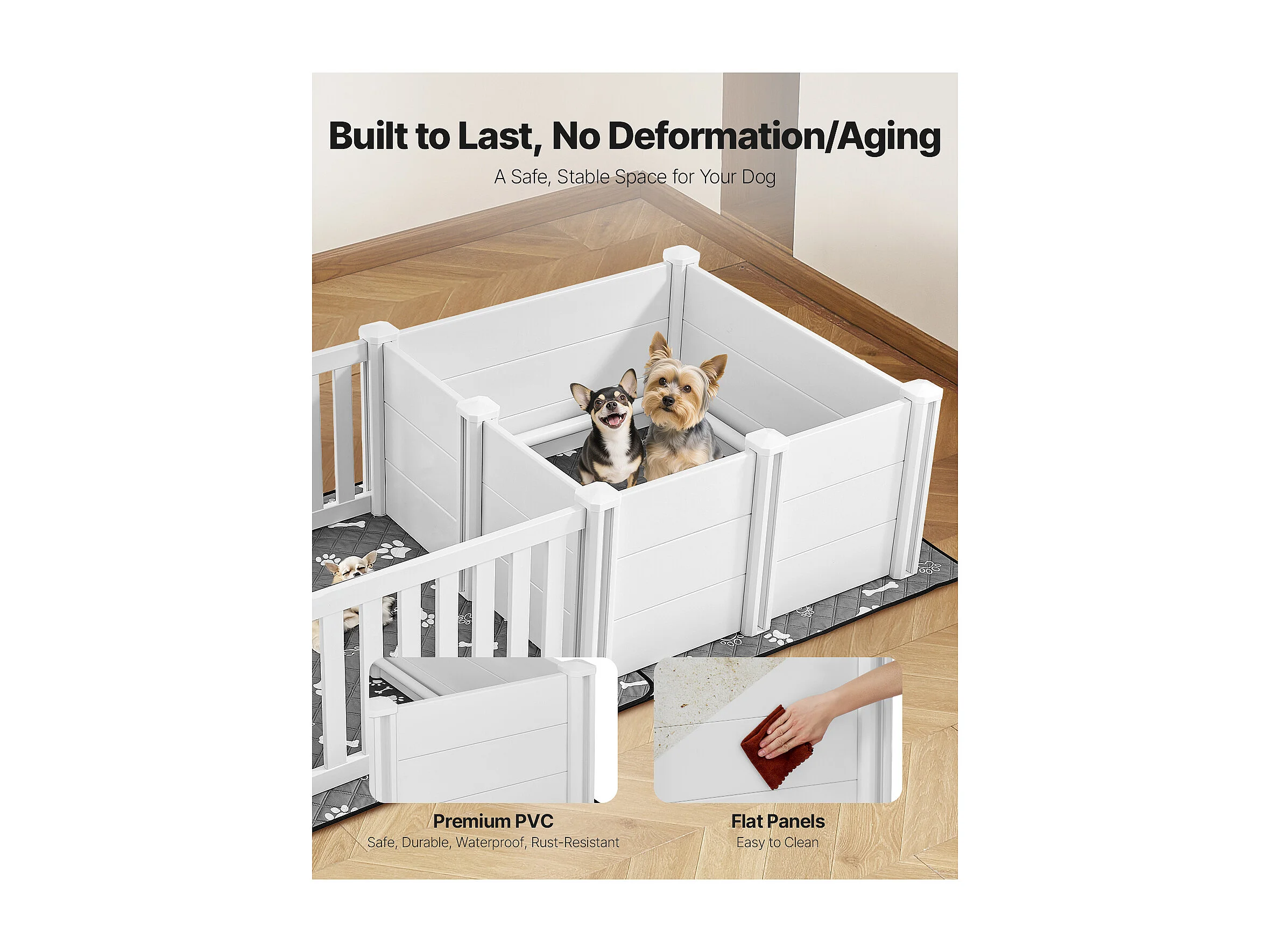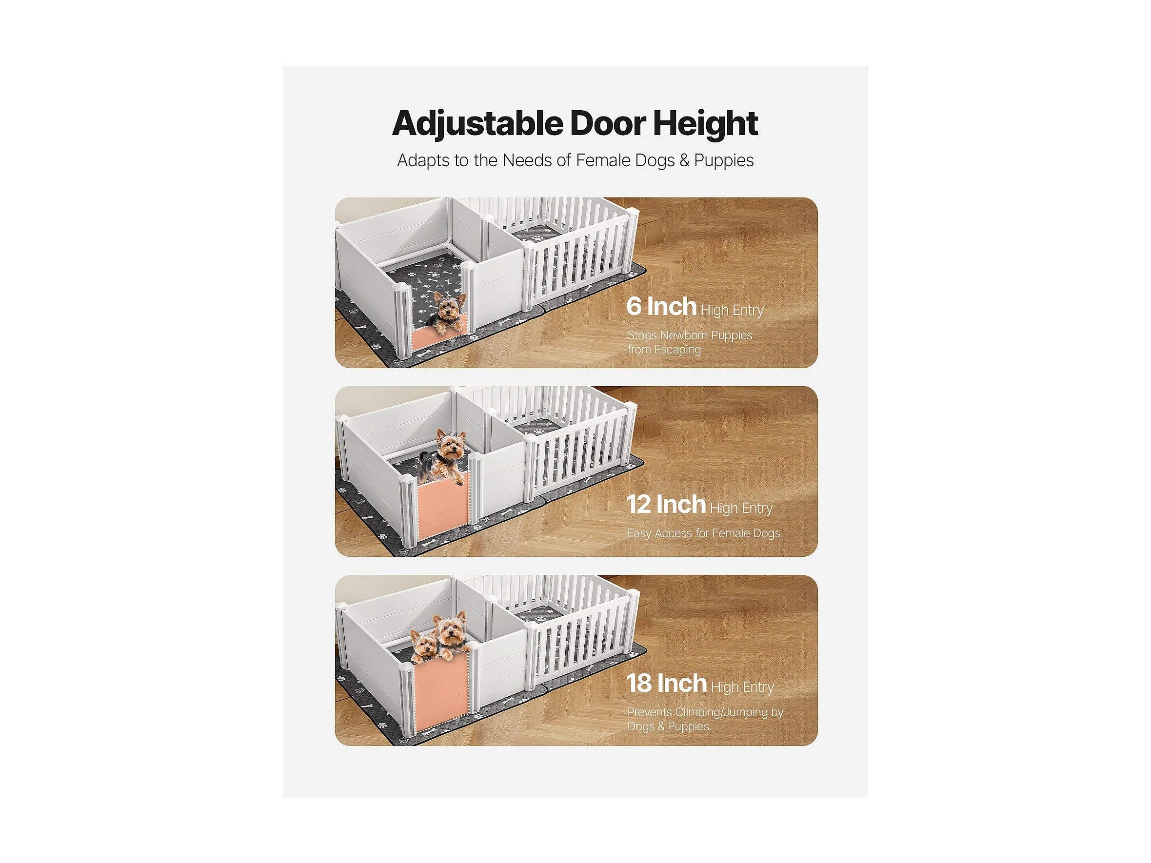 Parque de Parto SucceBuy para Perro, 186,5x97x50 cm, Caja de Parto para Cachorros, con Puerta de Altura Ajustable, Caja de Parto de Plástico PVC