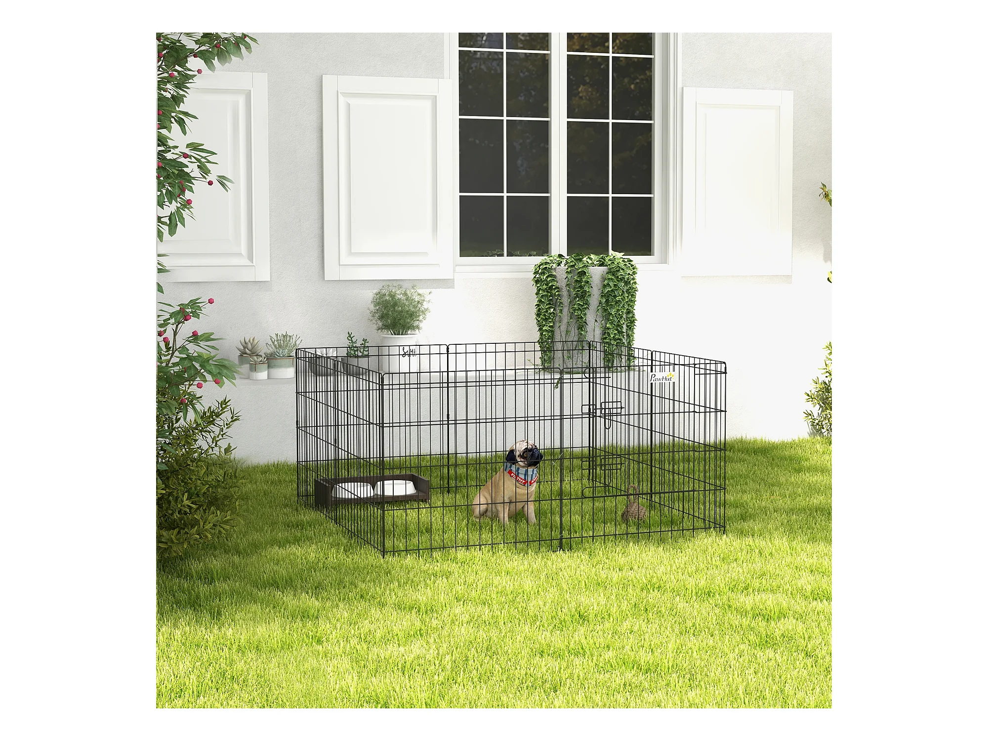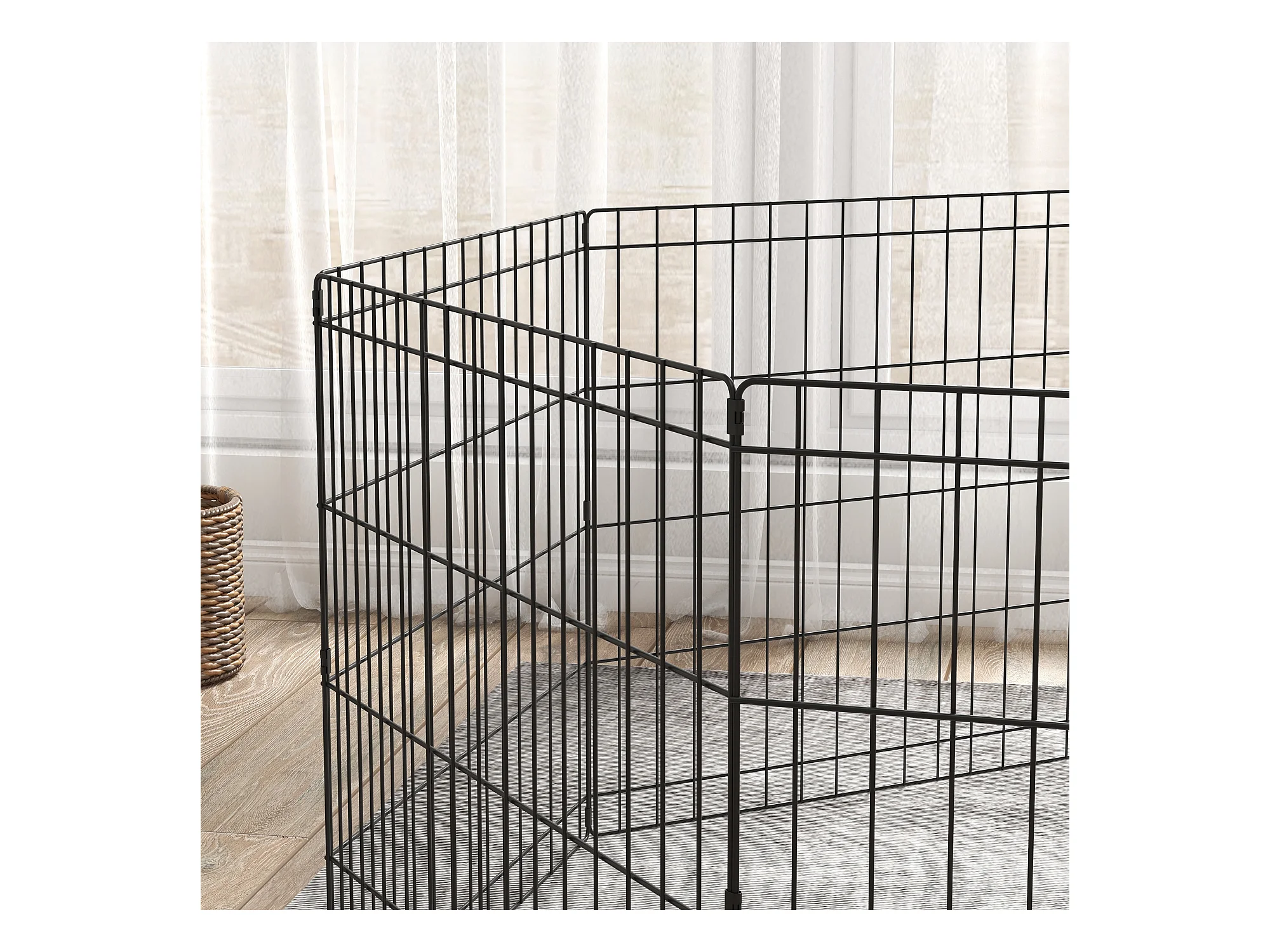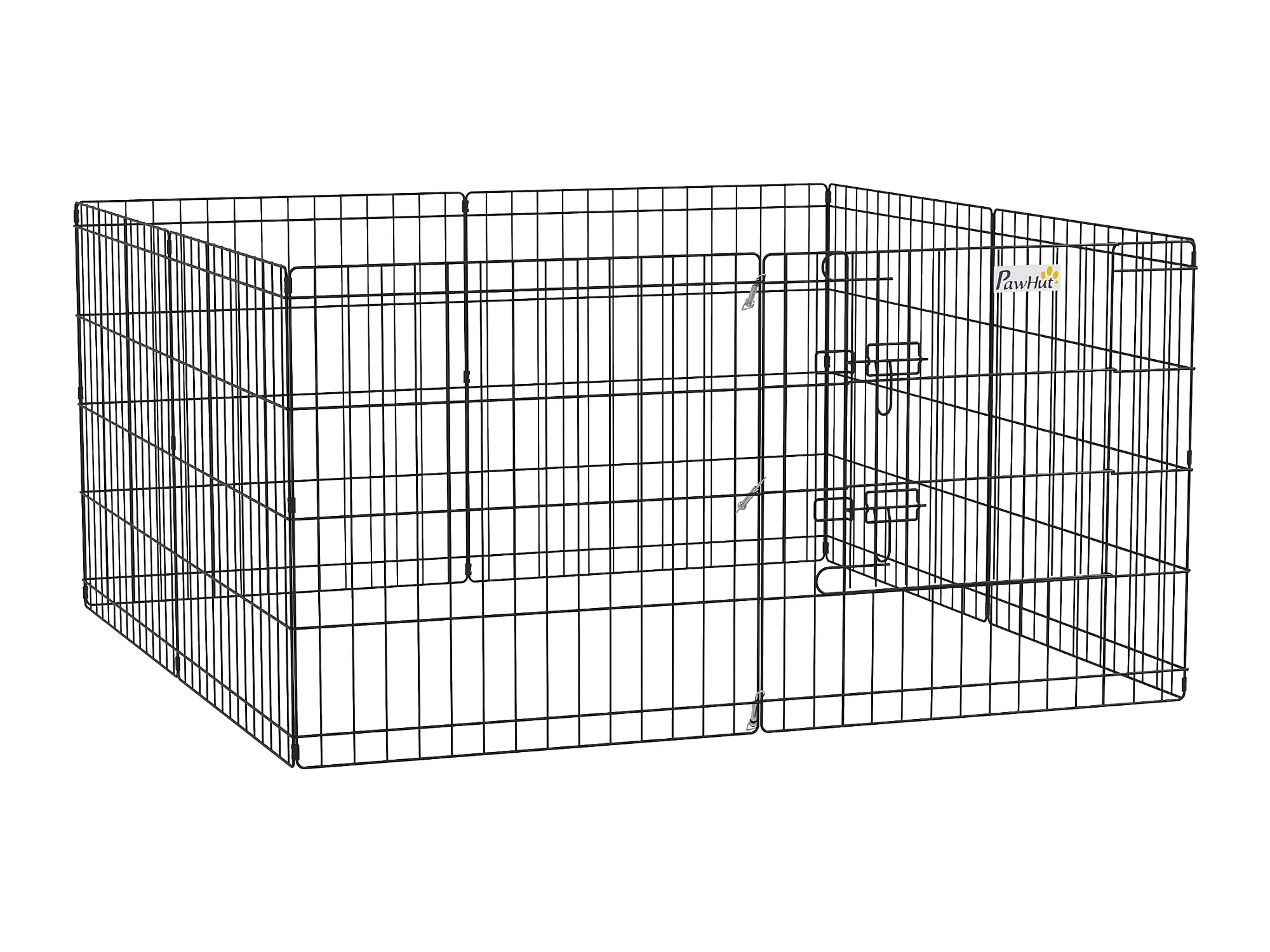 Puerta de perros plegable 8 paneles madera álamo negra 640 cm