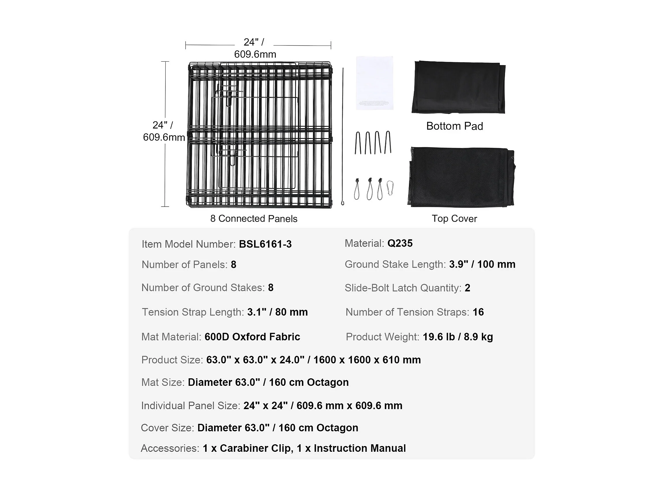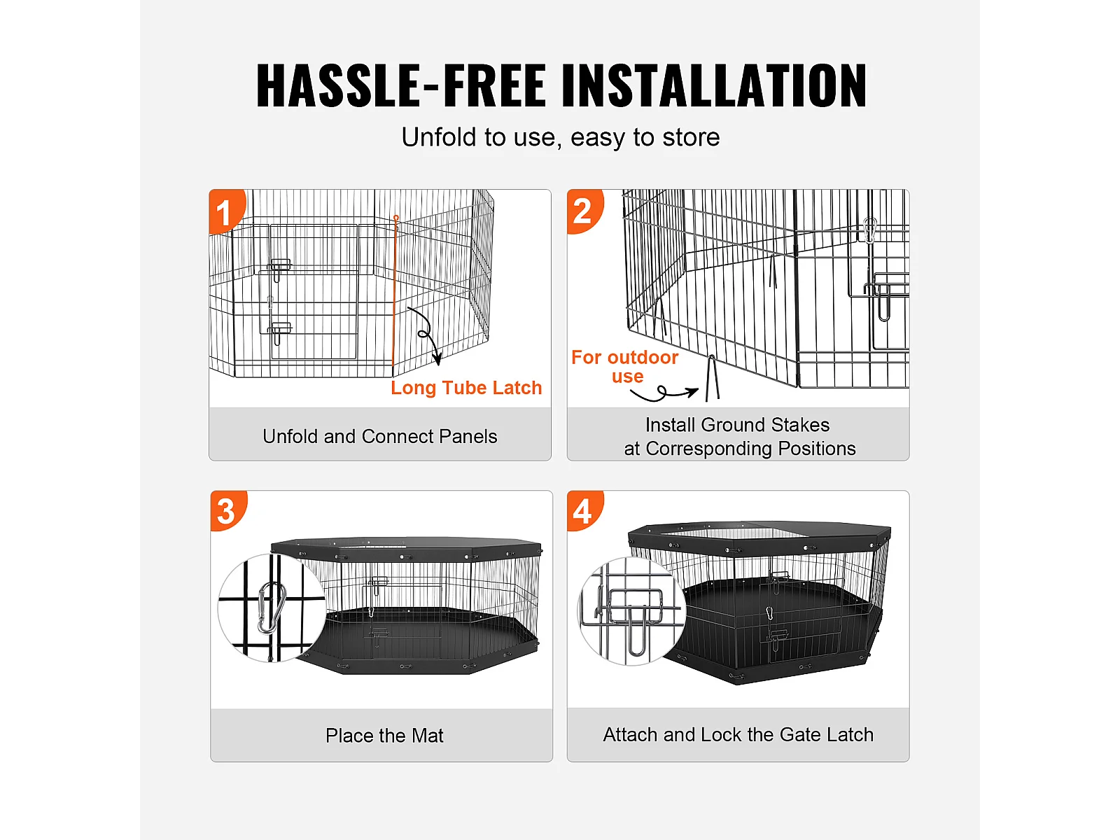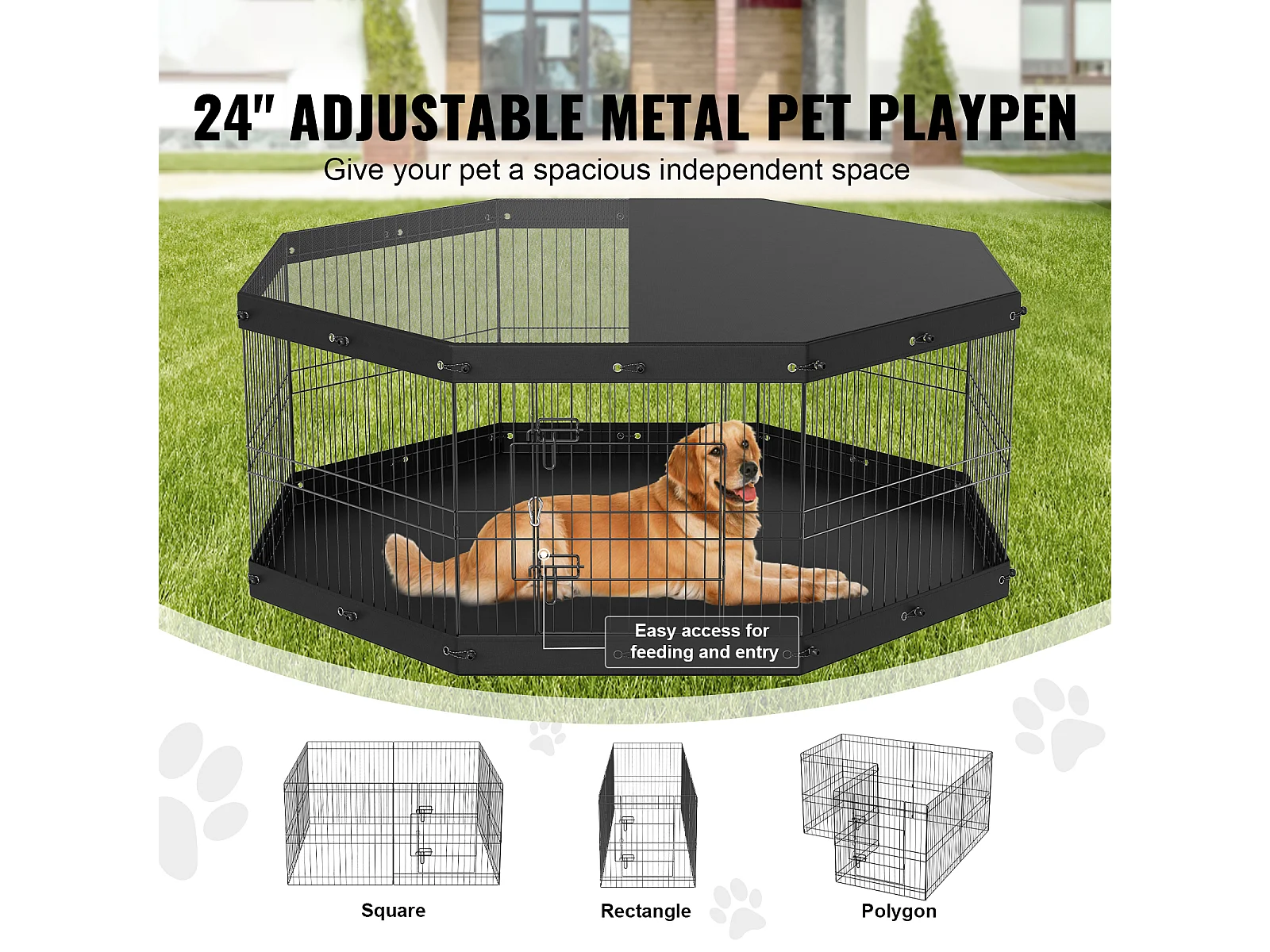 Parque para Perros SucceBuy Parque para Perros de 8 Paneles, Plegable de Metal con Cubierta y Almohadilla, para Ejercicio