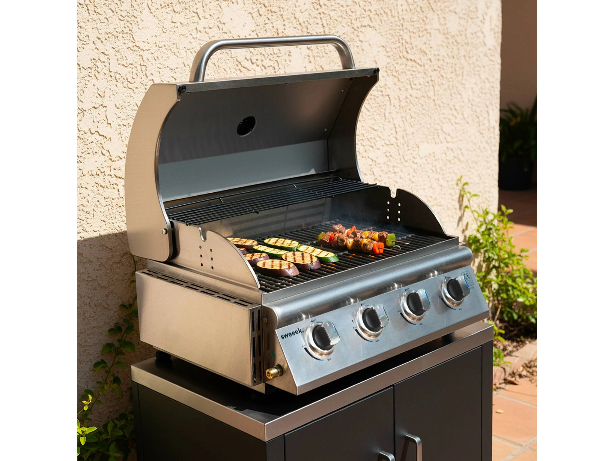 Parrilla de gas 4 quemadores empotrable plata