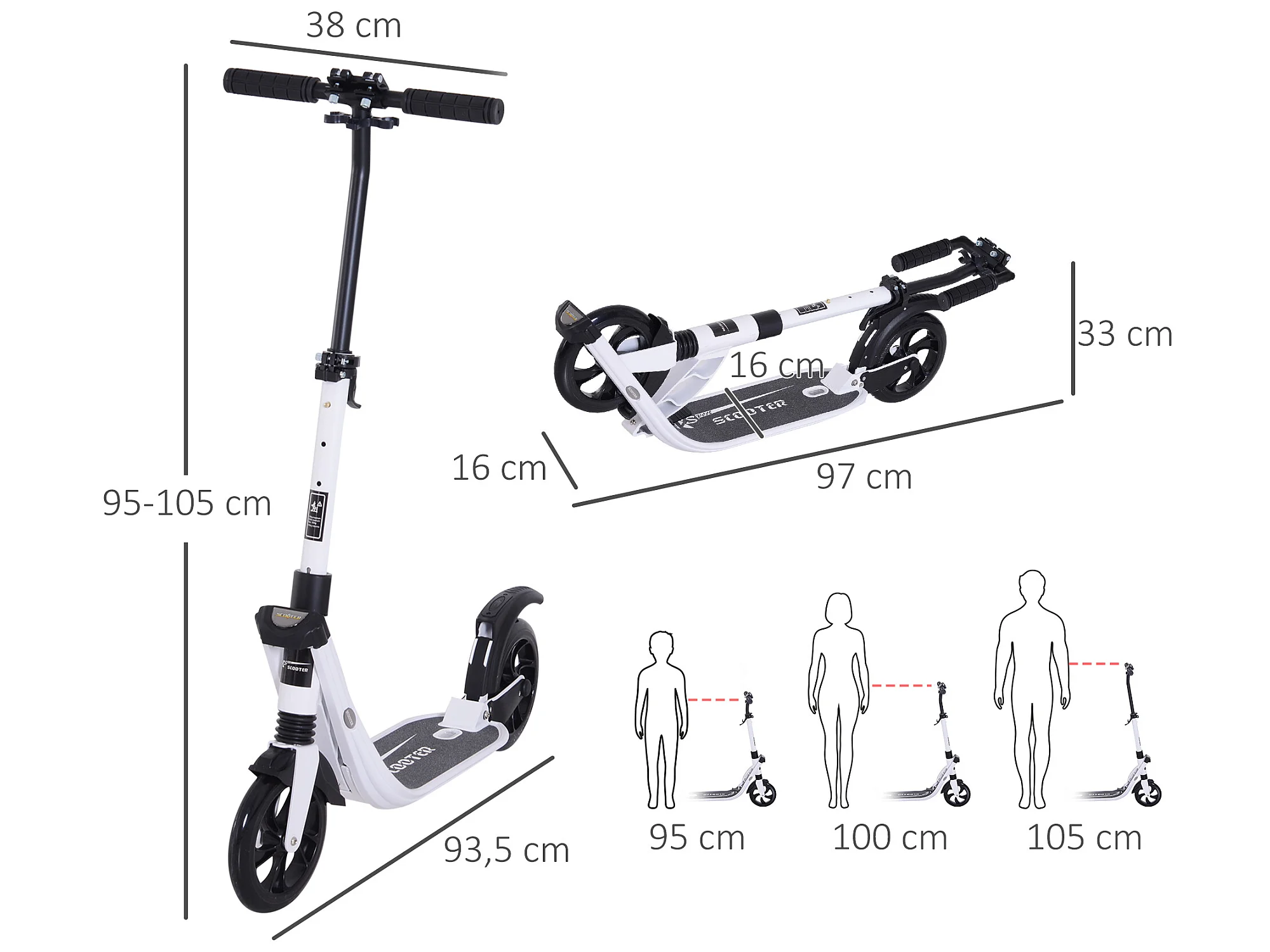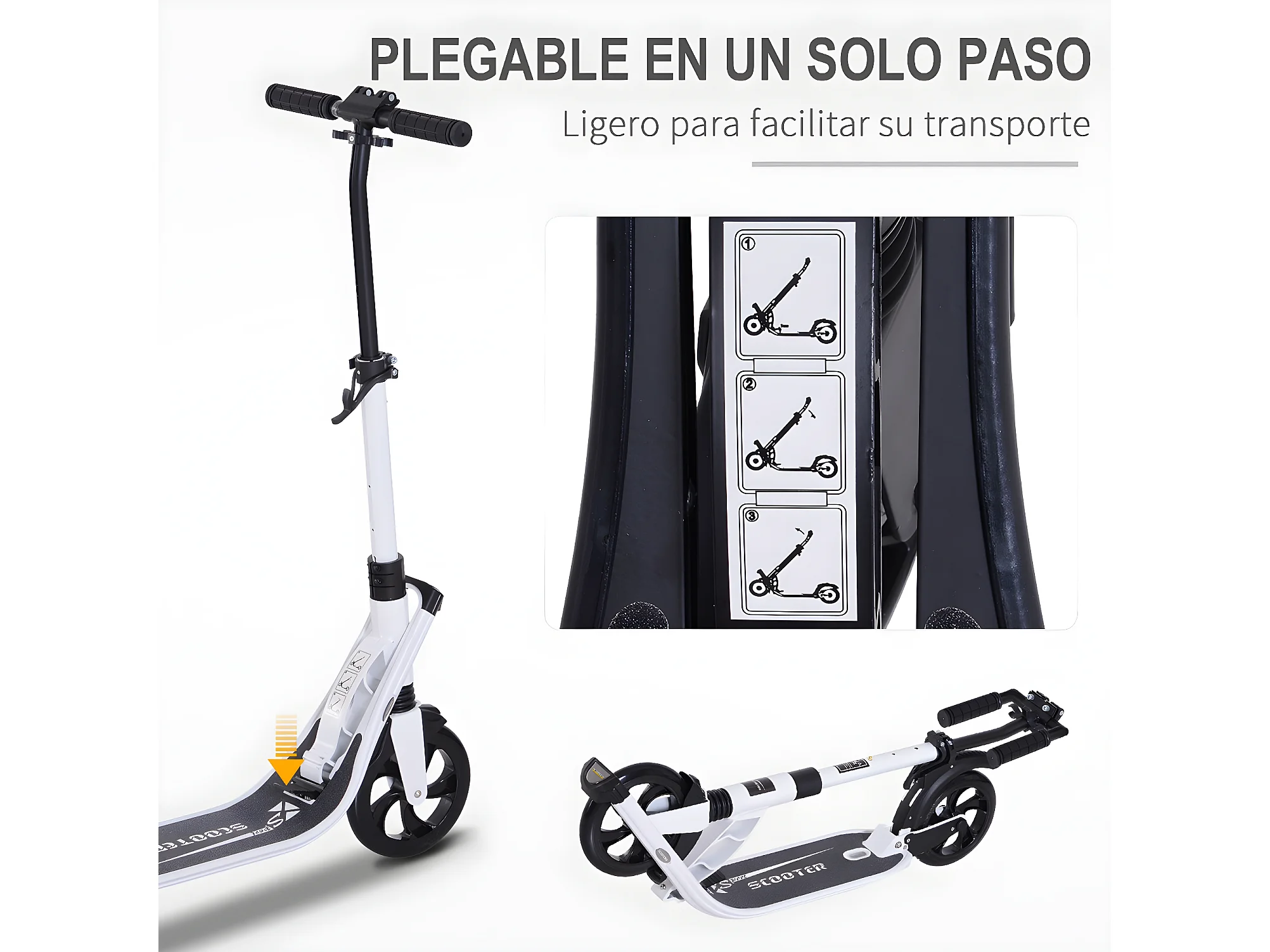 Patinete plegable blanco 93.5x38x105 cm HOMCOM