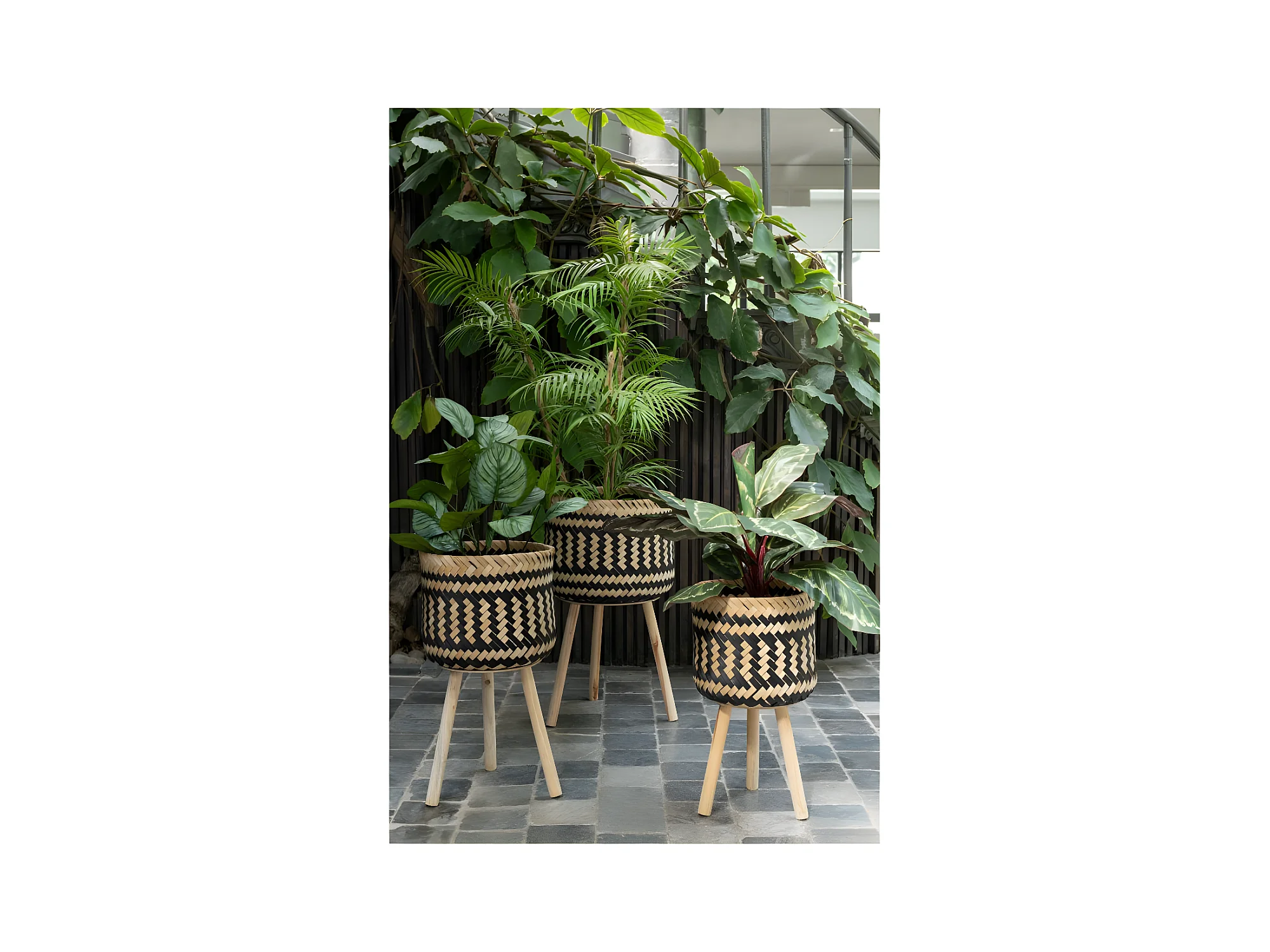Macetero con diseños de bistró en cemento natural de 26x26x24 cm