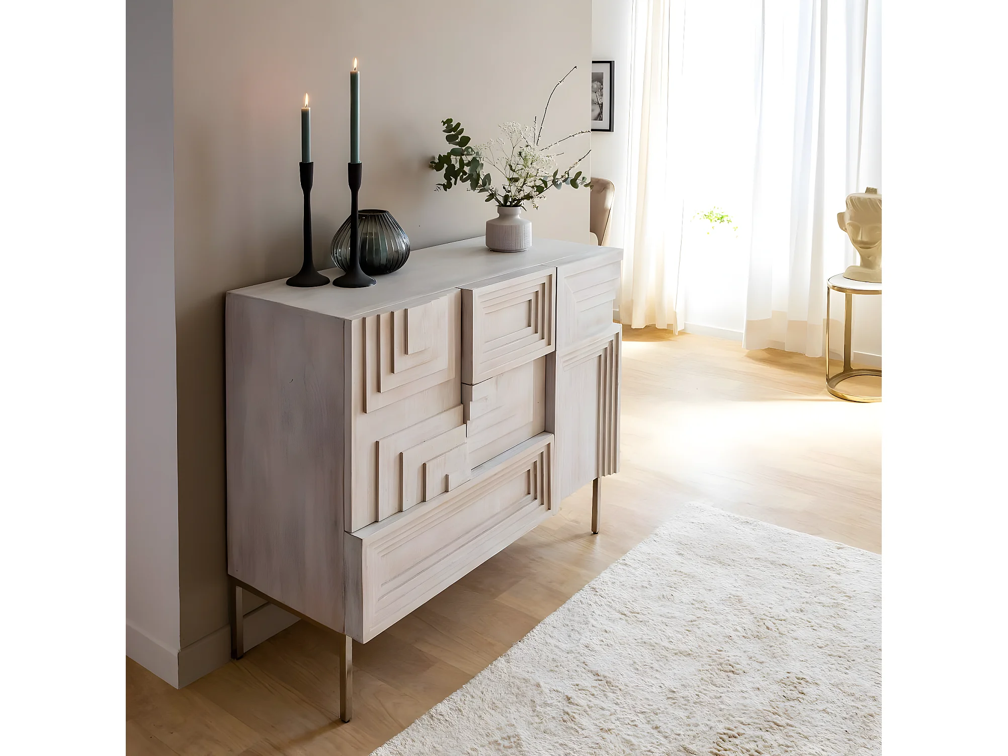 Buffet de madera de mango Adara con 3 puertas y manijas originales