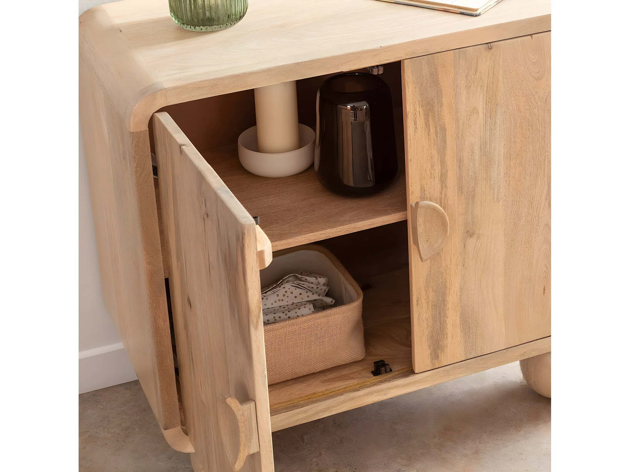 Aparador fabricado en madera de mango con esquinas redondeadas