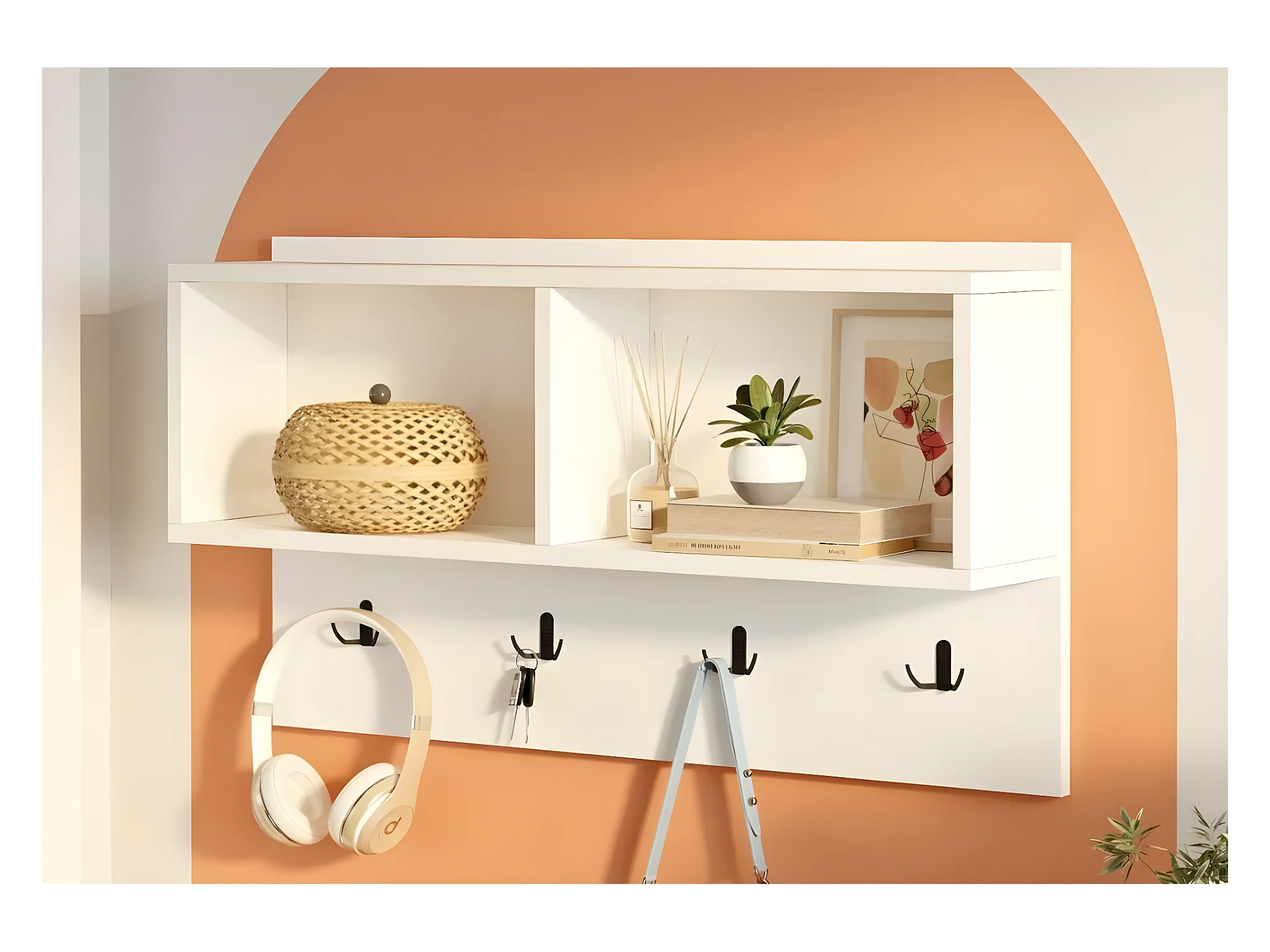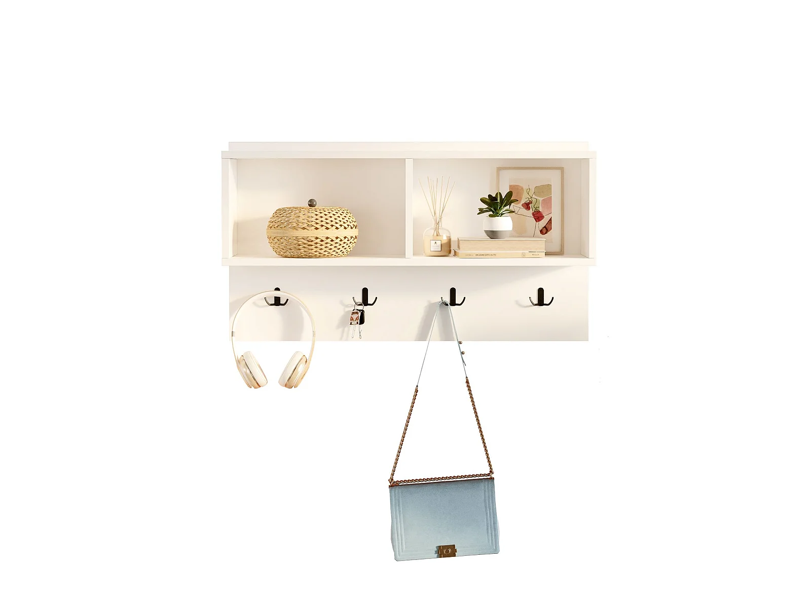 Perchero Dpons, Perchas, Percha multiusos, Perchero de pared, 64x4 h79 cm, Blanco
