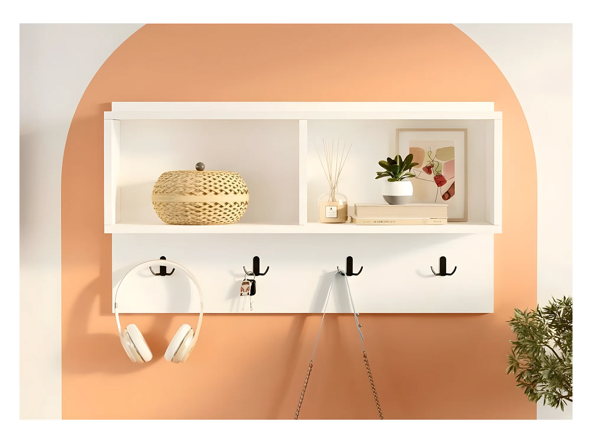 Muebles de entrada Dkornvi, Perchero con 3 ganchos, Estante de almacenamiento de pasillo, 100% Made in Italy, 90x29h34 cm, Blanco y Roble
