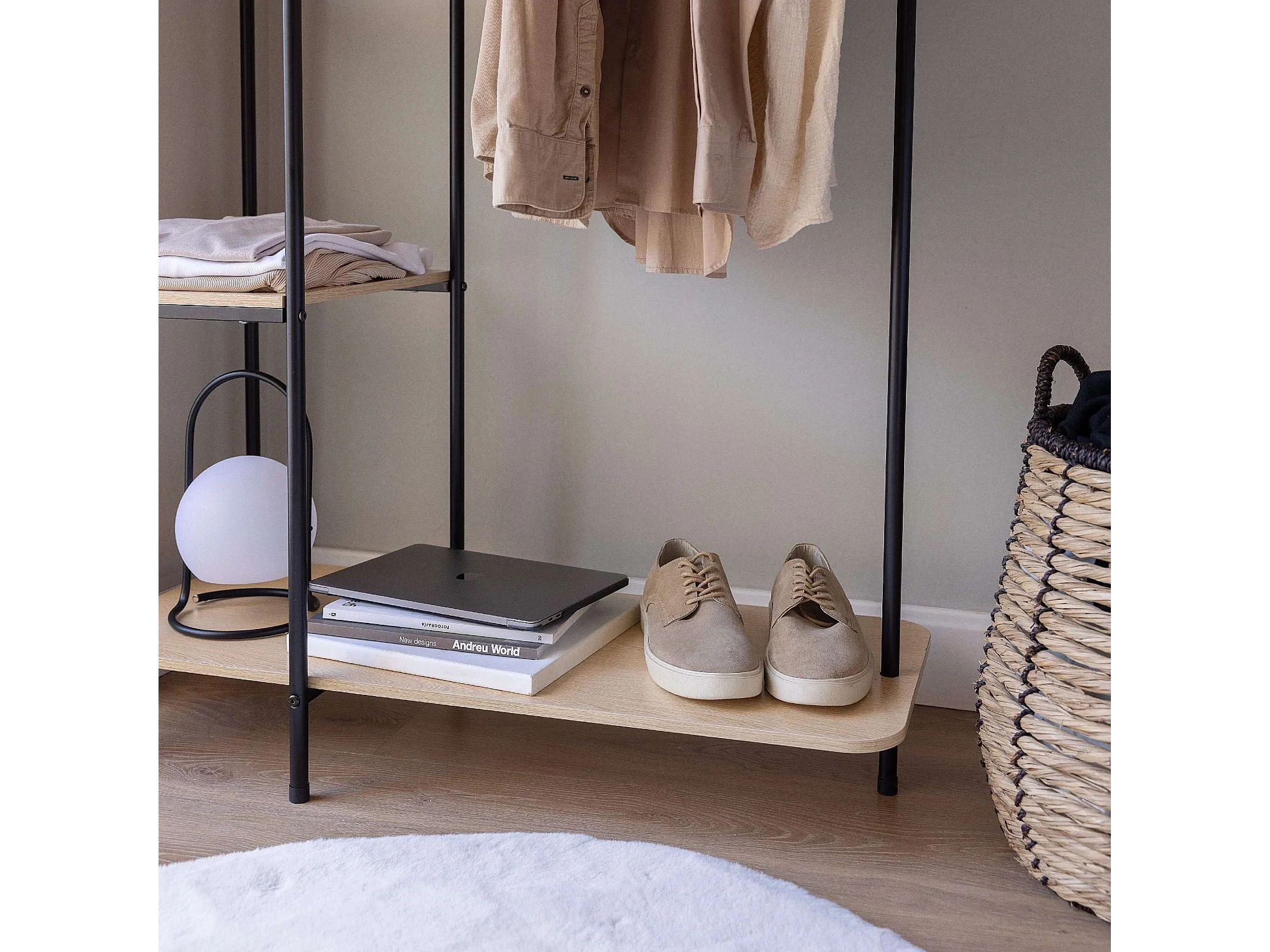 Perchero con ruedas, robusto perchero doble con 2 estantes, multifuncional 80,5x51x155cm