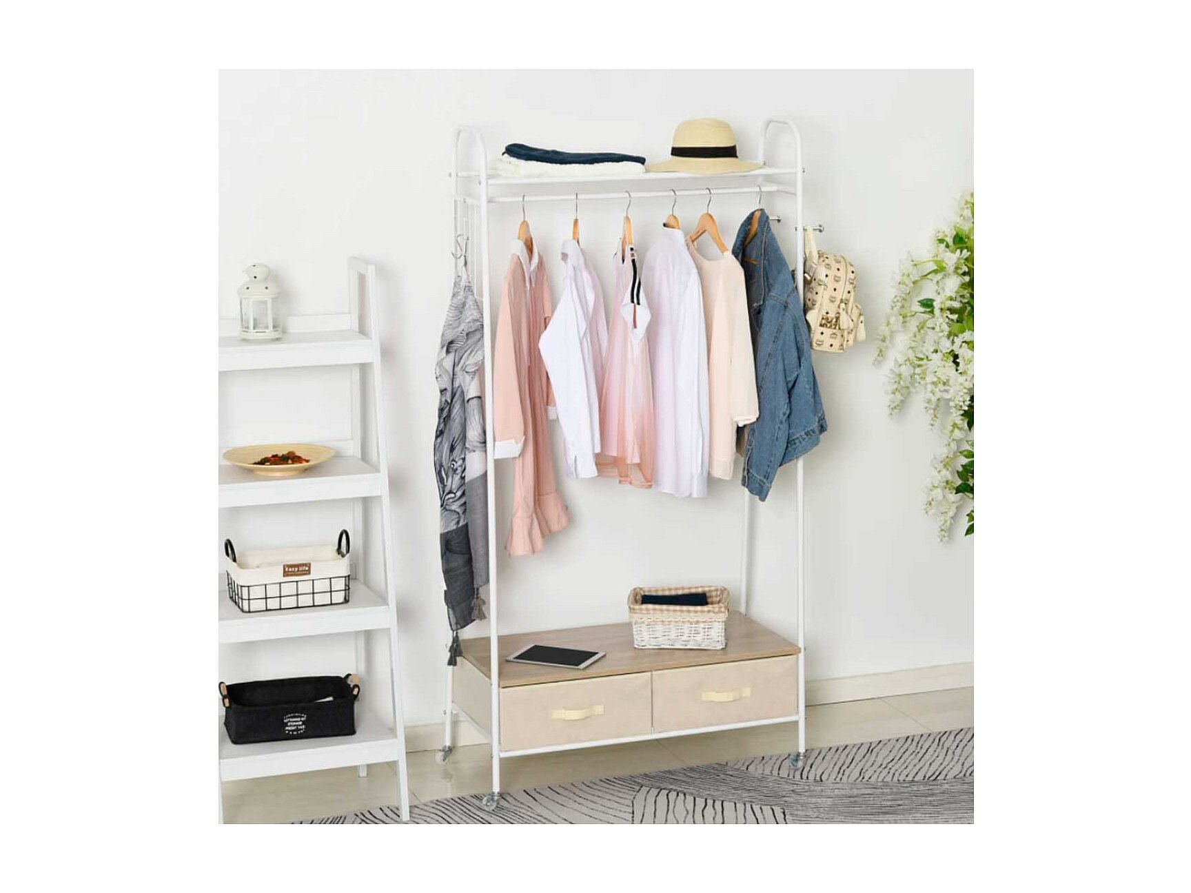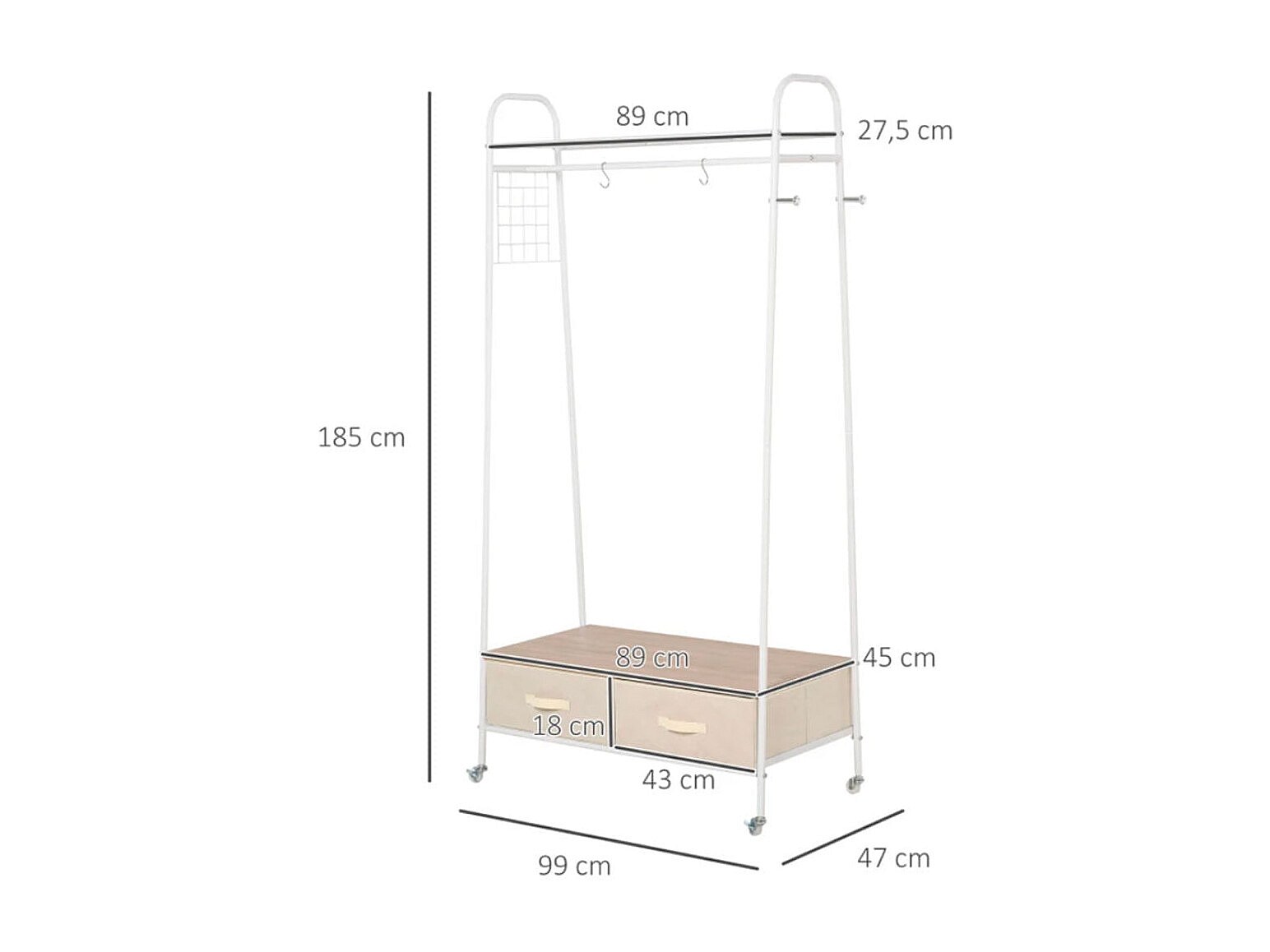 Perchero metálico con ruedas blanco y beige 99x47x185cm HOMCOM