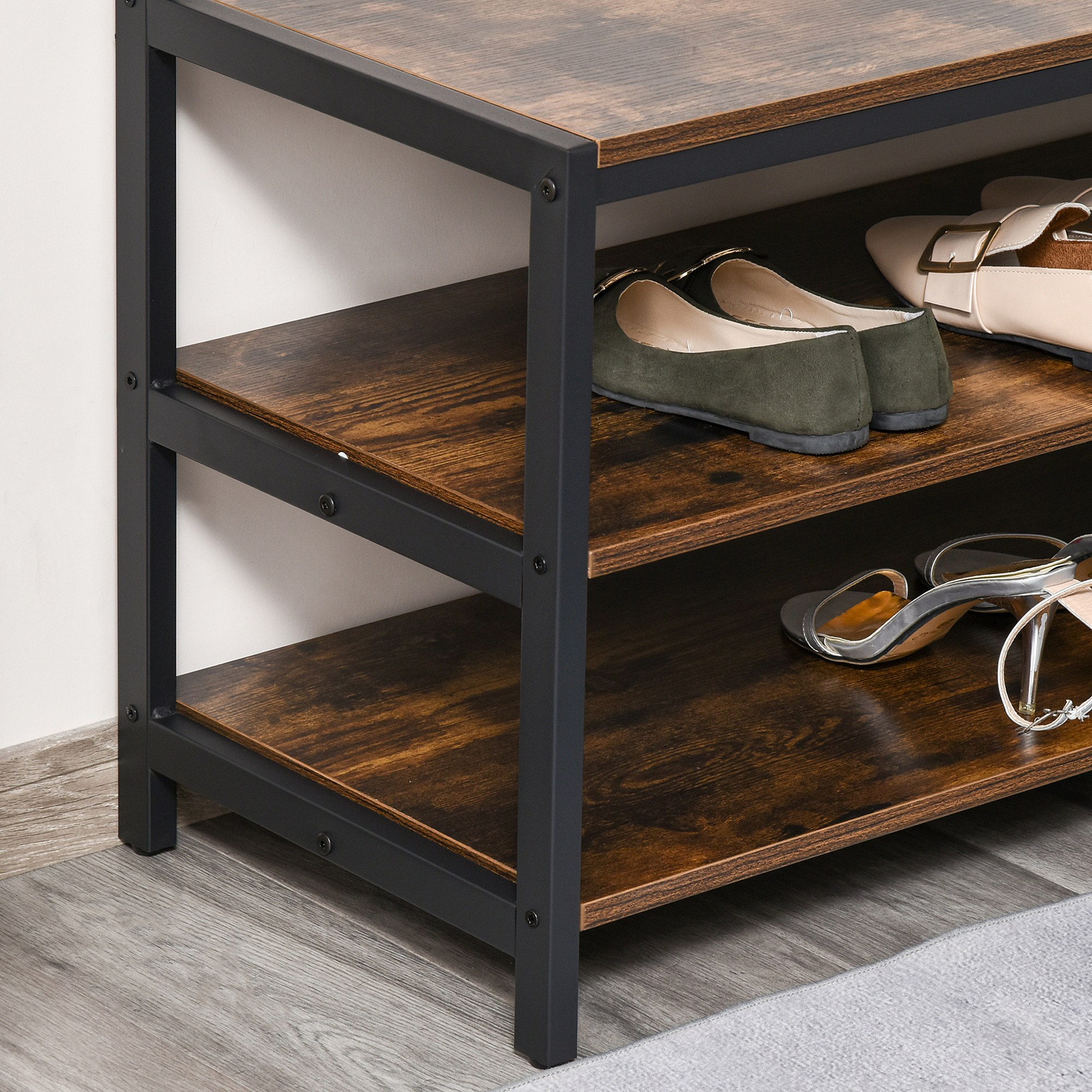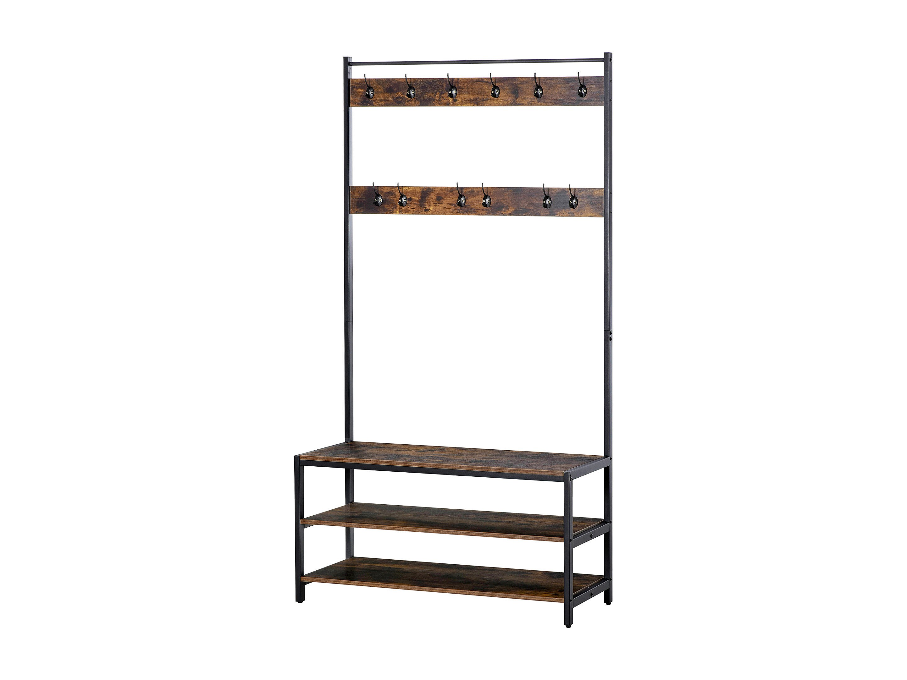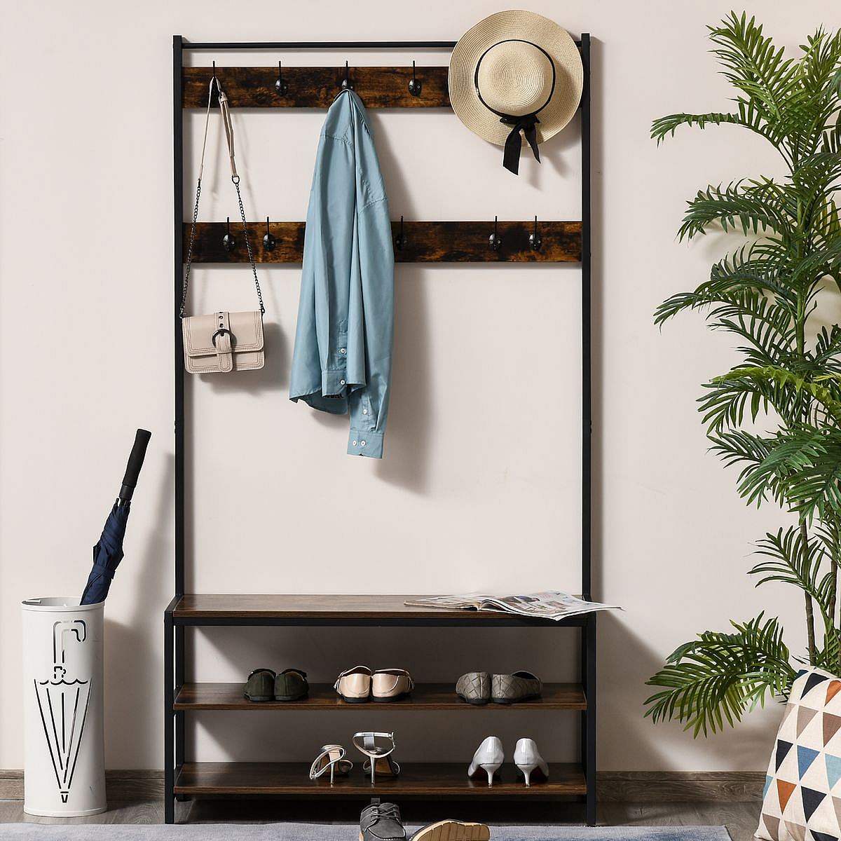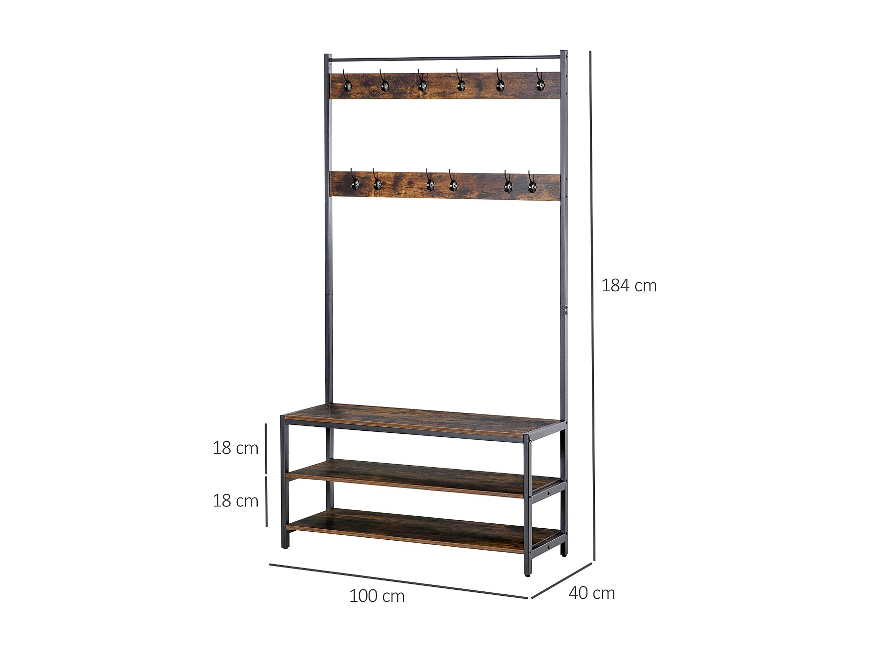 Perchero con zapatero marrón rústico y negro 100x40x184 cm HOMCOM