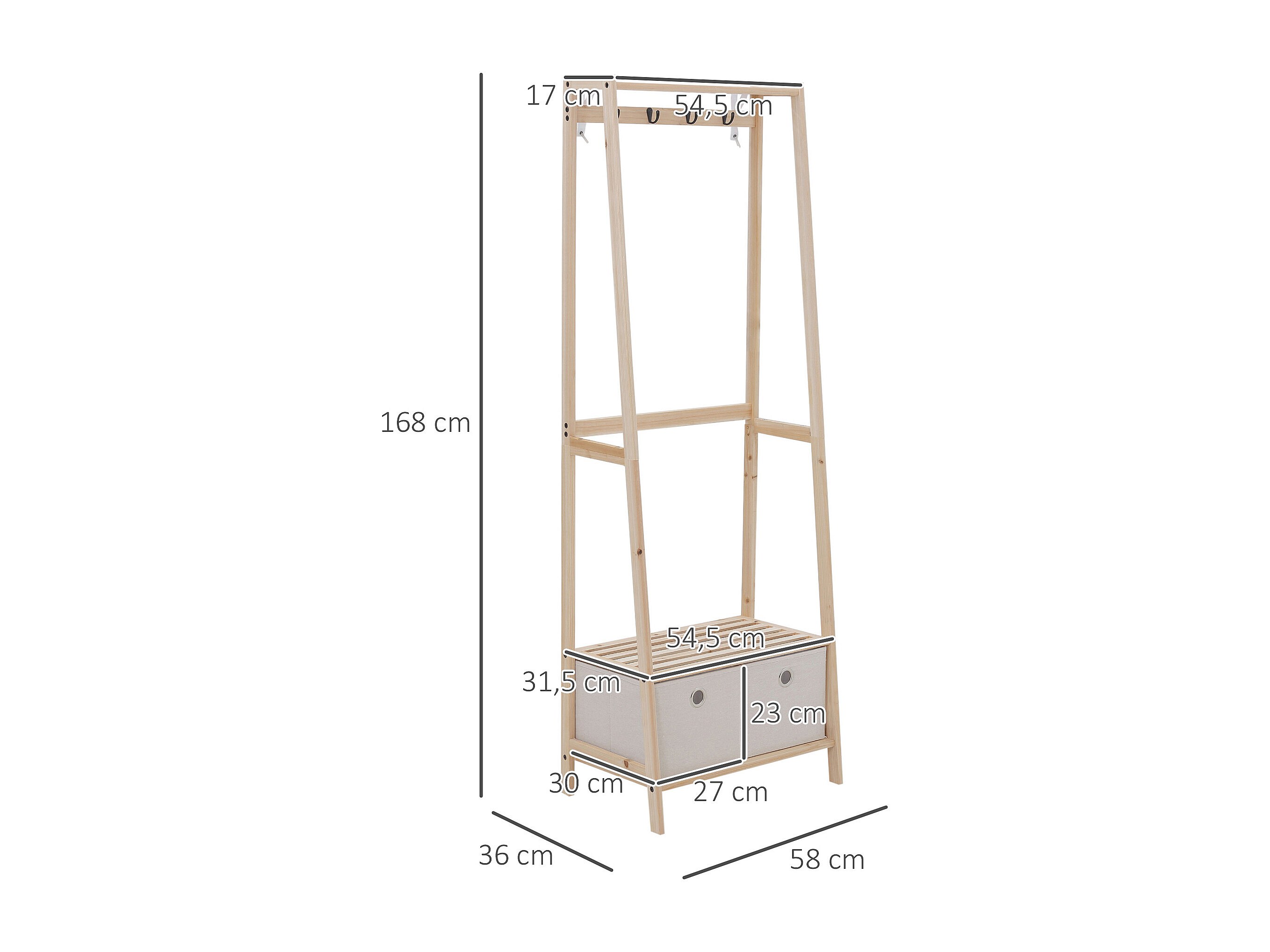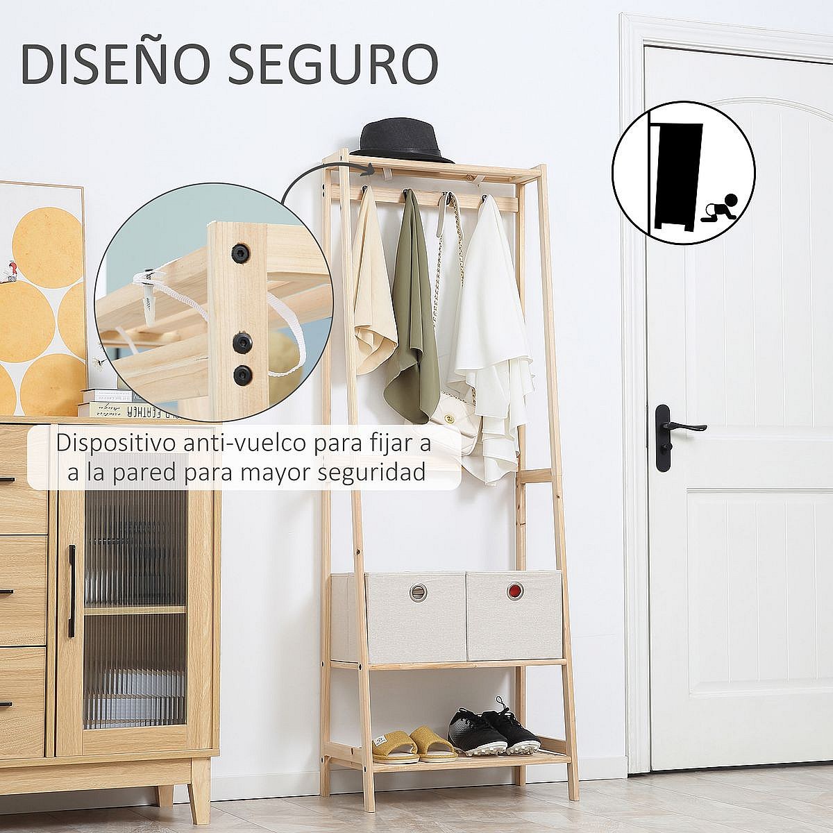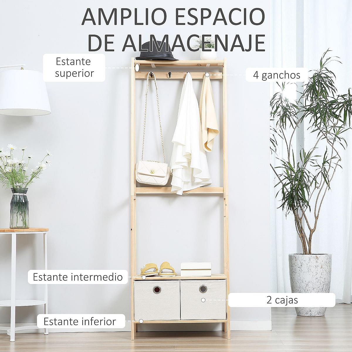 Perchero con zapatero madera natural 58x36x168 cm HOMCOM