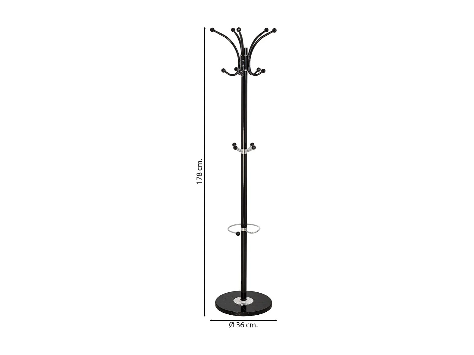 Perchero de metal negro con paraguero y 6 ganchos D 36X178h cm