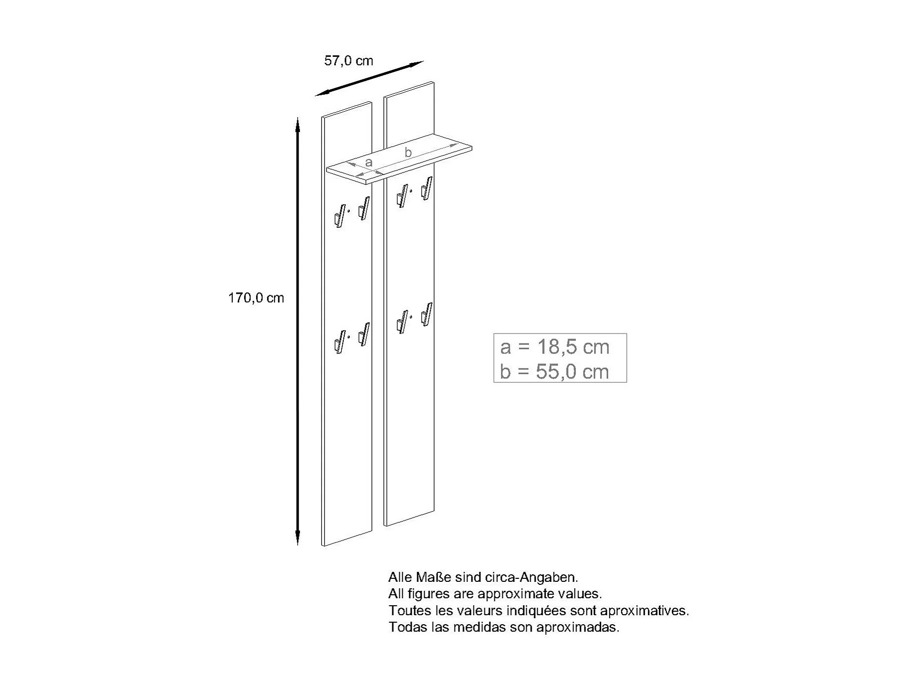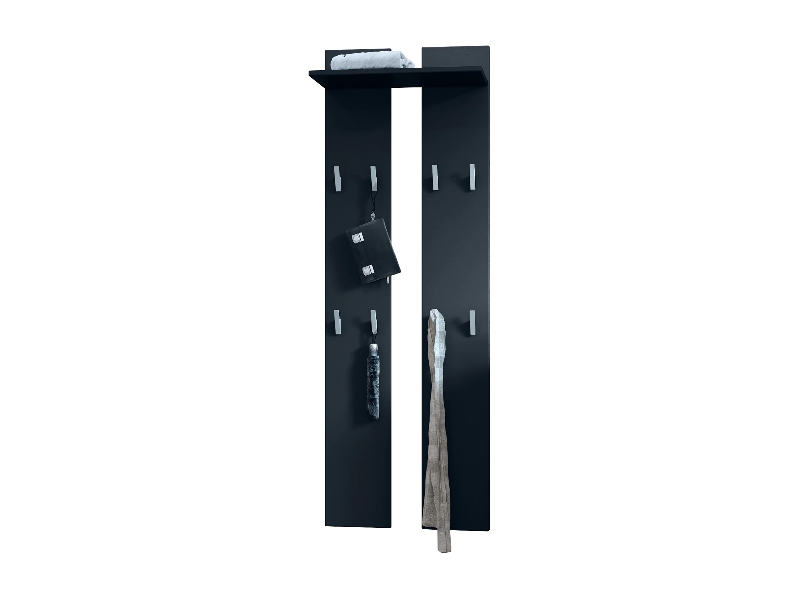 Perchero de pared 170, Perchero compuesto por 2 Paneles y 1 Superficie de almacenamiento, negro mate (57 x 170 x 20 cm)