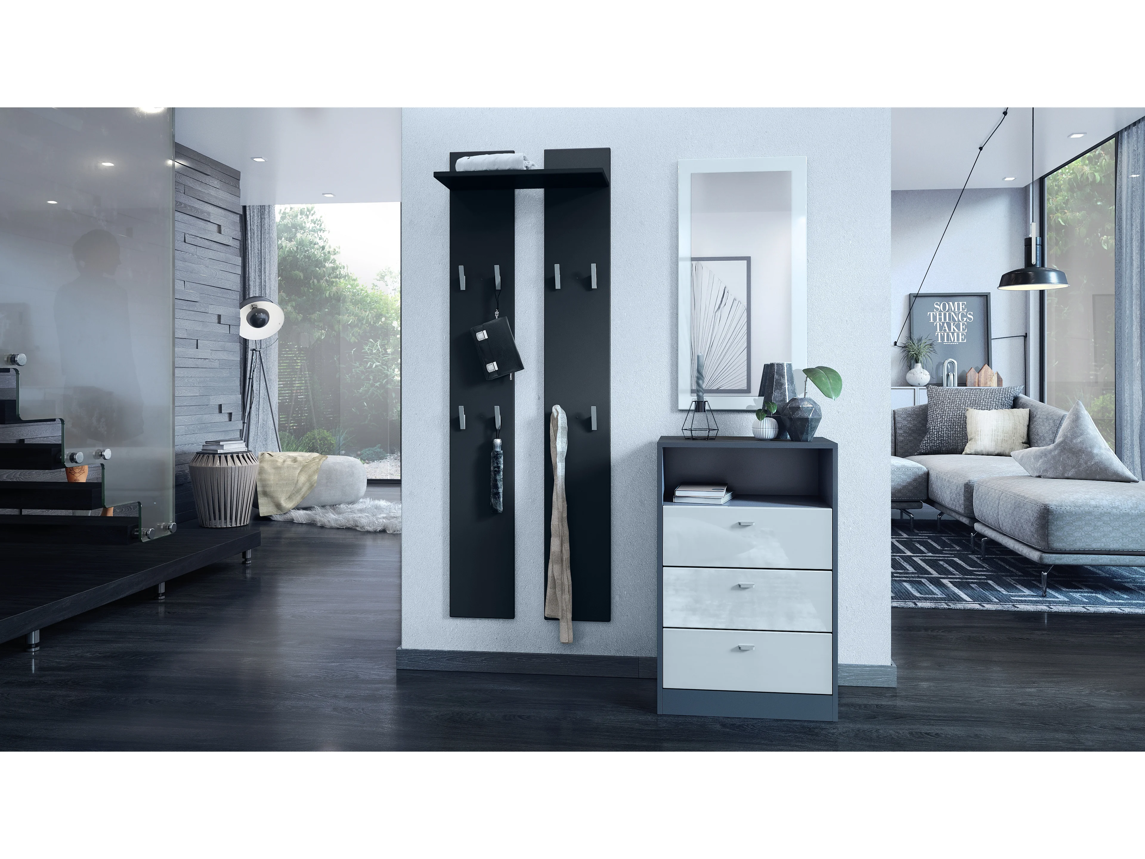 Vladon Mueble recibidor Carlton Set 2, Mueble de entrada compuesto por 1 Perchero, 1 Armario de cajones, antracita mate/negro de alto brillo (105 x 193 x 35 cm)