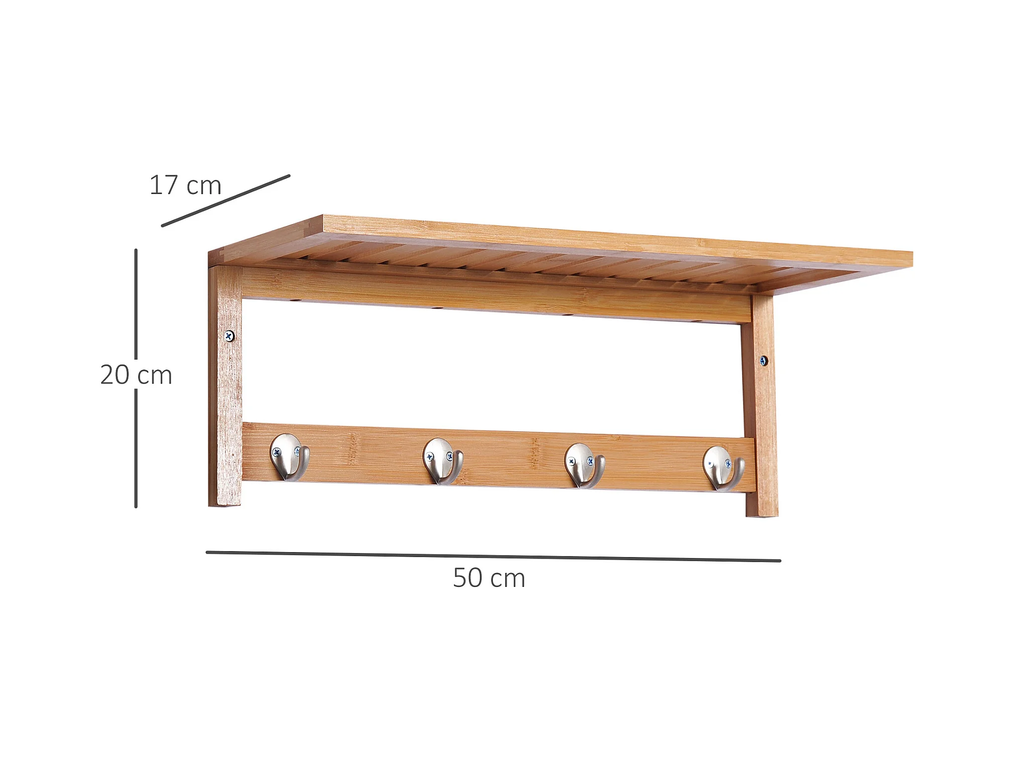 Perchero de pared de bambú bambú natural 50x16x17,5 cm HOMCOM