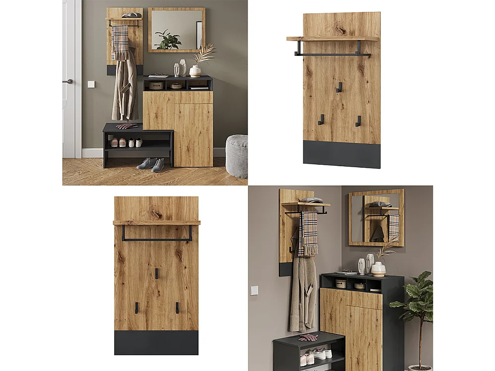 Perchero de pared antracita/roble dorado 60x1.6x15 orlando
