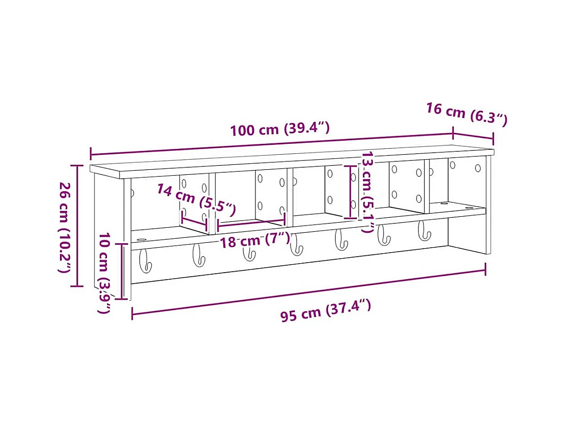 Perchero de pared Blanco 100 x 16 x 26 cm Madera de ingeniería