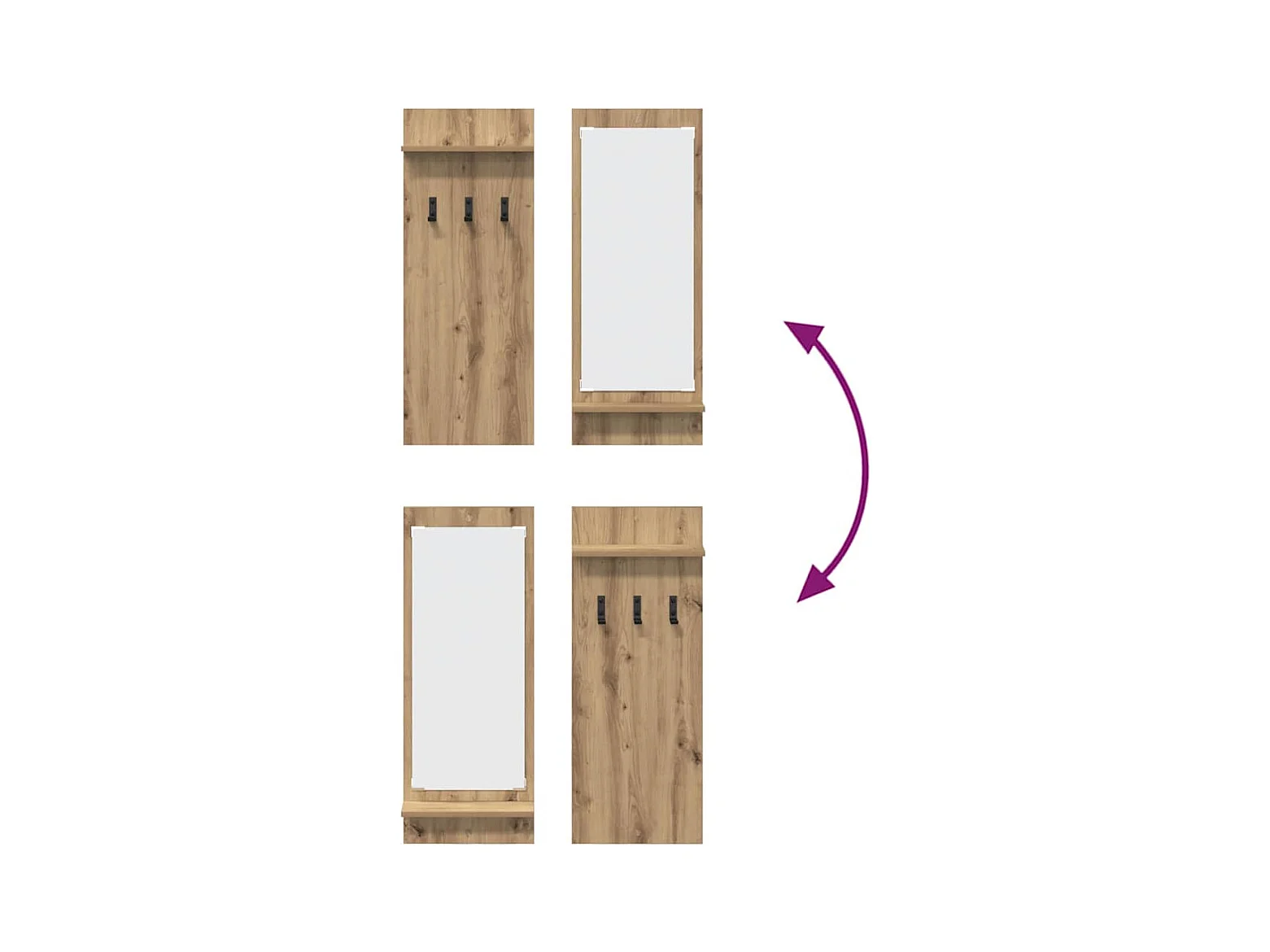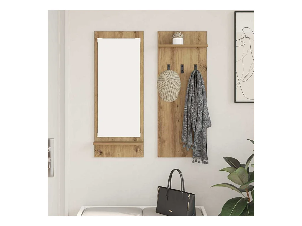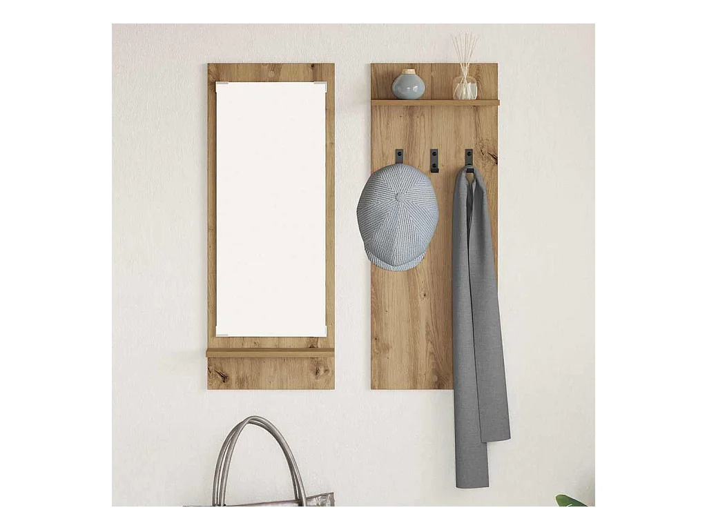 Perchero de pared con espejo, roble artesanal, 70 x 10 x 90 cm