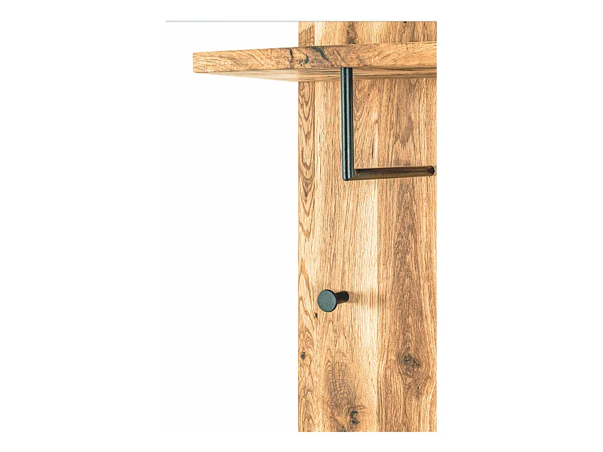 Perchero de pared de diseño en roble aceitado y metal negro 7 ganchos Lorna