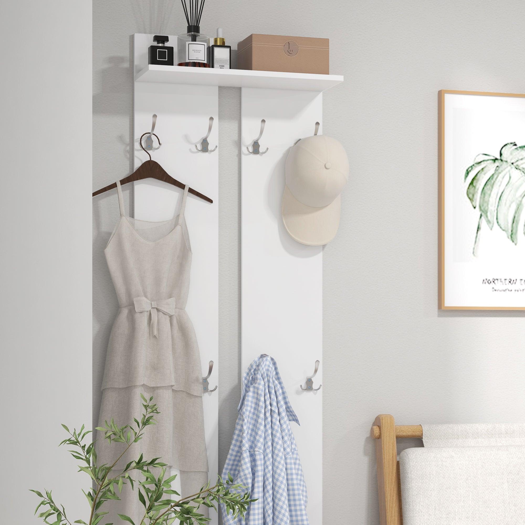 Este perchero de pared modelo Doo de la marca Homcom, es la solución perfecta para mantener tu hogar organizado sin ocupar espacio en el suelo. Con su diseño moderno y elegante en color blanco, se adapta perfectamente a cualquier estilo de decoración, aportando un toque de frescura y sencillez a tu entrada, pasillo o cualquier otro espacio que necesite un poco de orden. Equipado con ocho ganchos, este perchero es ideal para colgar abrigos, bufandas, bolsos y otros accesorios que suelen estar por el suelo o dispersos por la casa. Además, cuenta con un estante adicional donde puedes colocar pequeños objetos, zapatos o incluso decoración, aprovechando al máximo el espacio vertical.