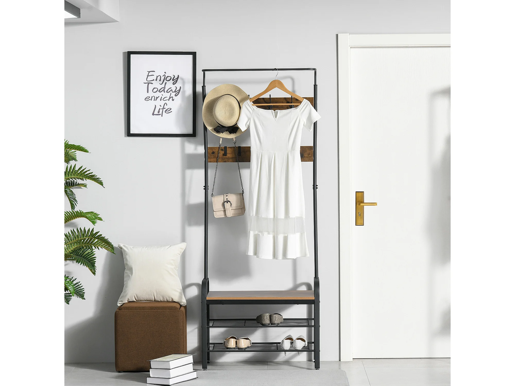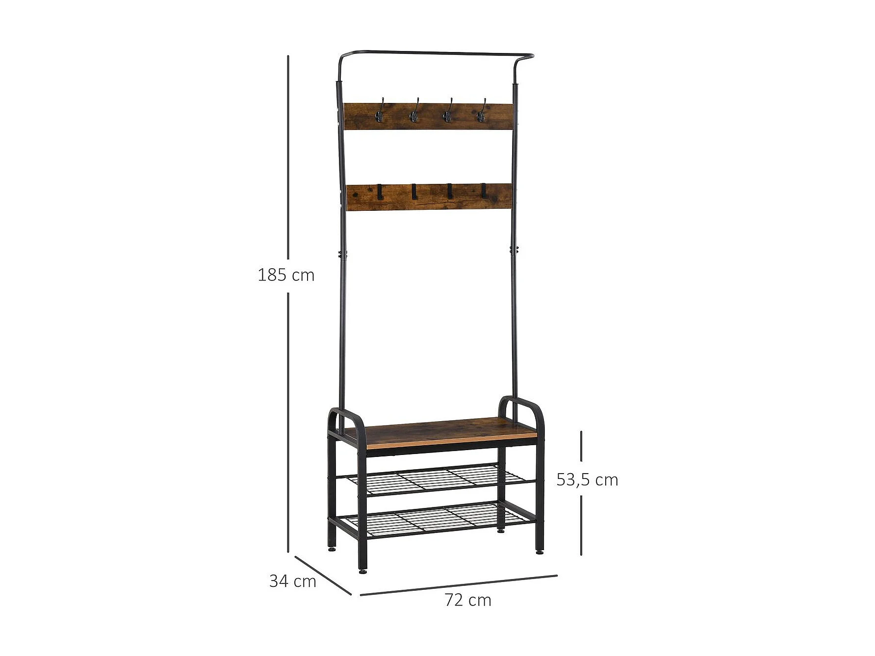Perchero metálico negro, color de grano de madera 72x34x185cm HOMCOM