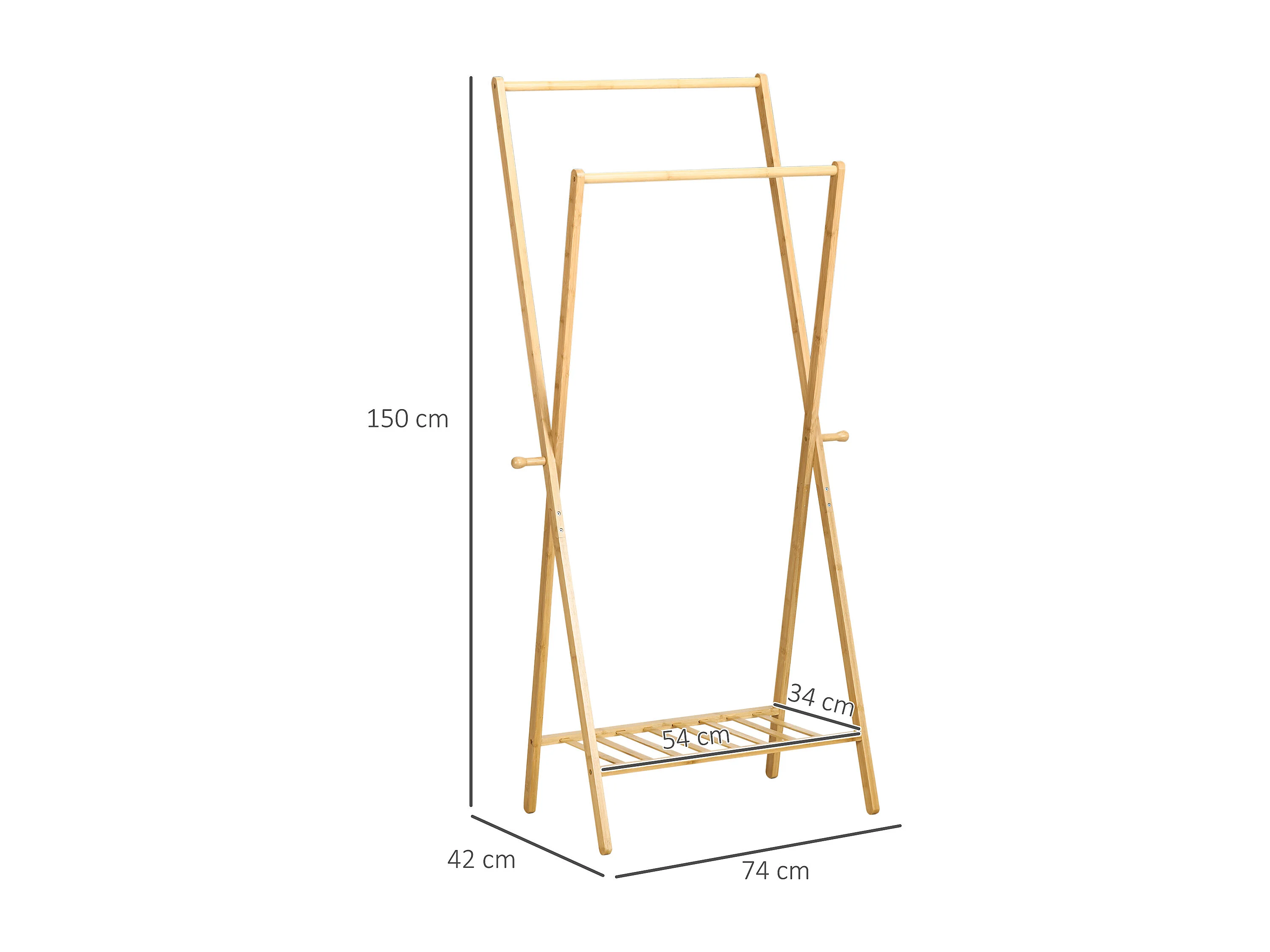 Perchero de pie madera natural 74x42x150 cm HOMCOM