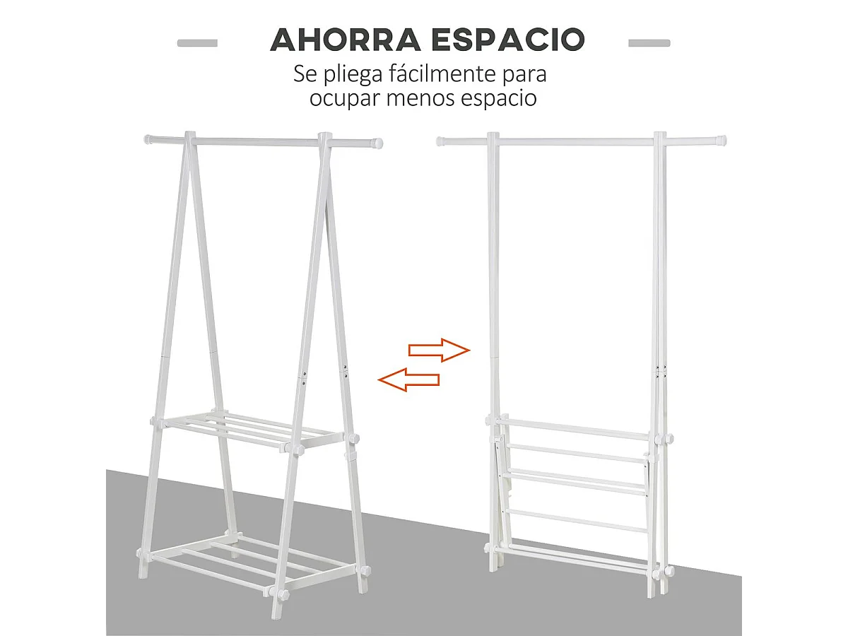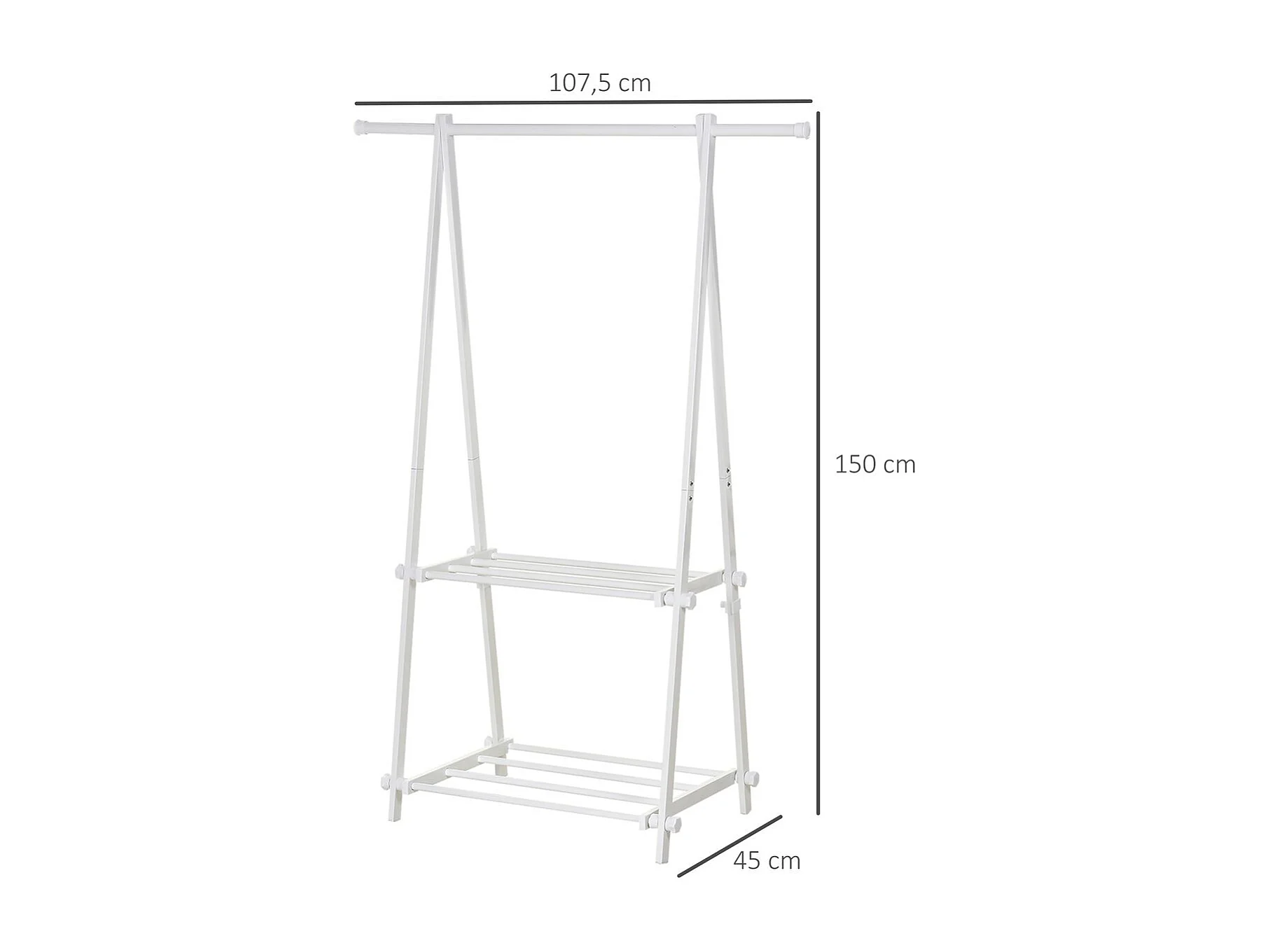 Perchero de pie Balik Homcom 2 estantes + barra blanco 150x107,5x45 cm