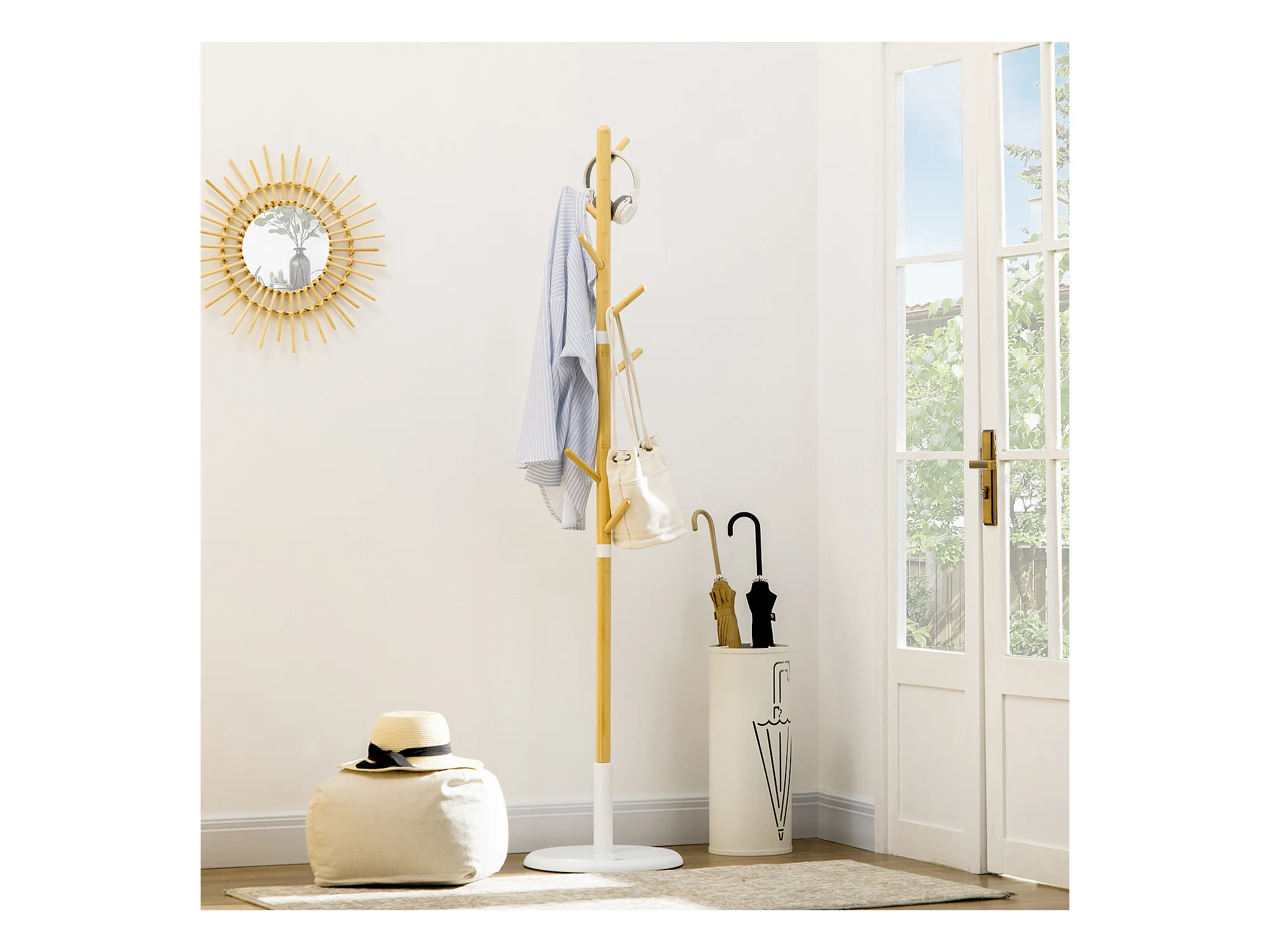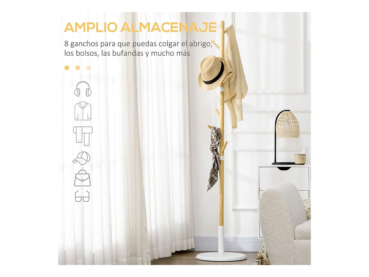 Perchero de pie madera natural 37.8x37.8x175.6 cm HOMCOM