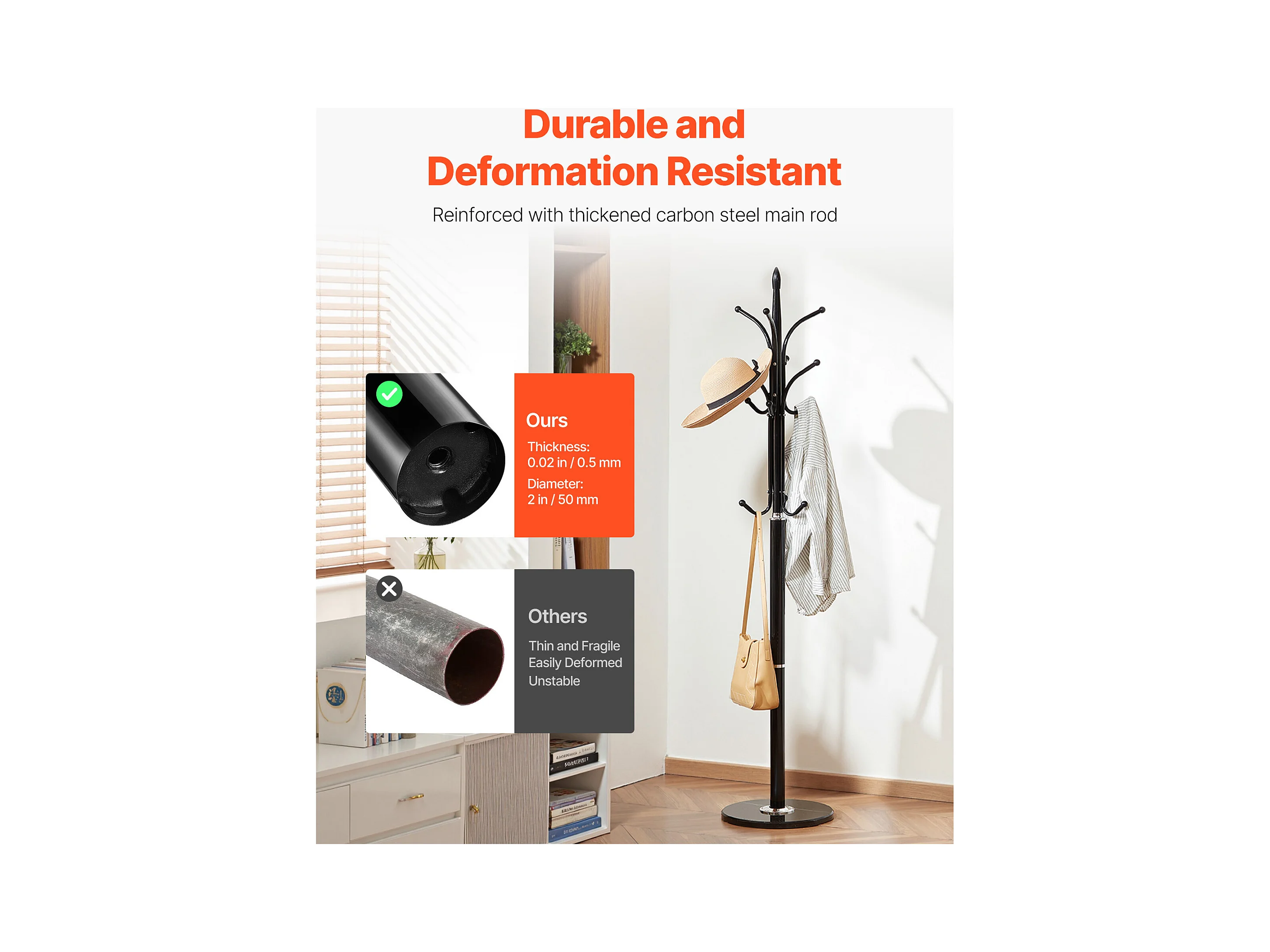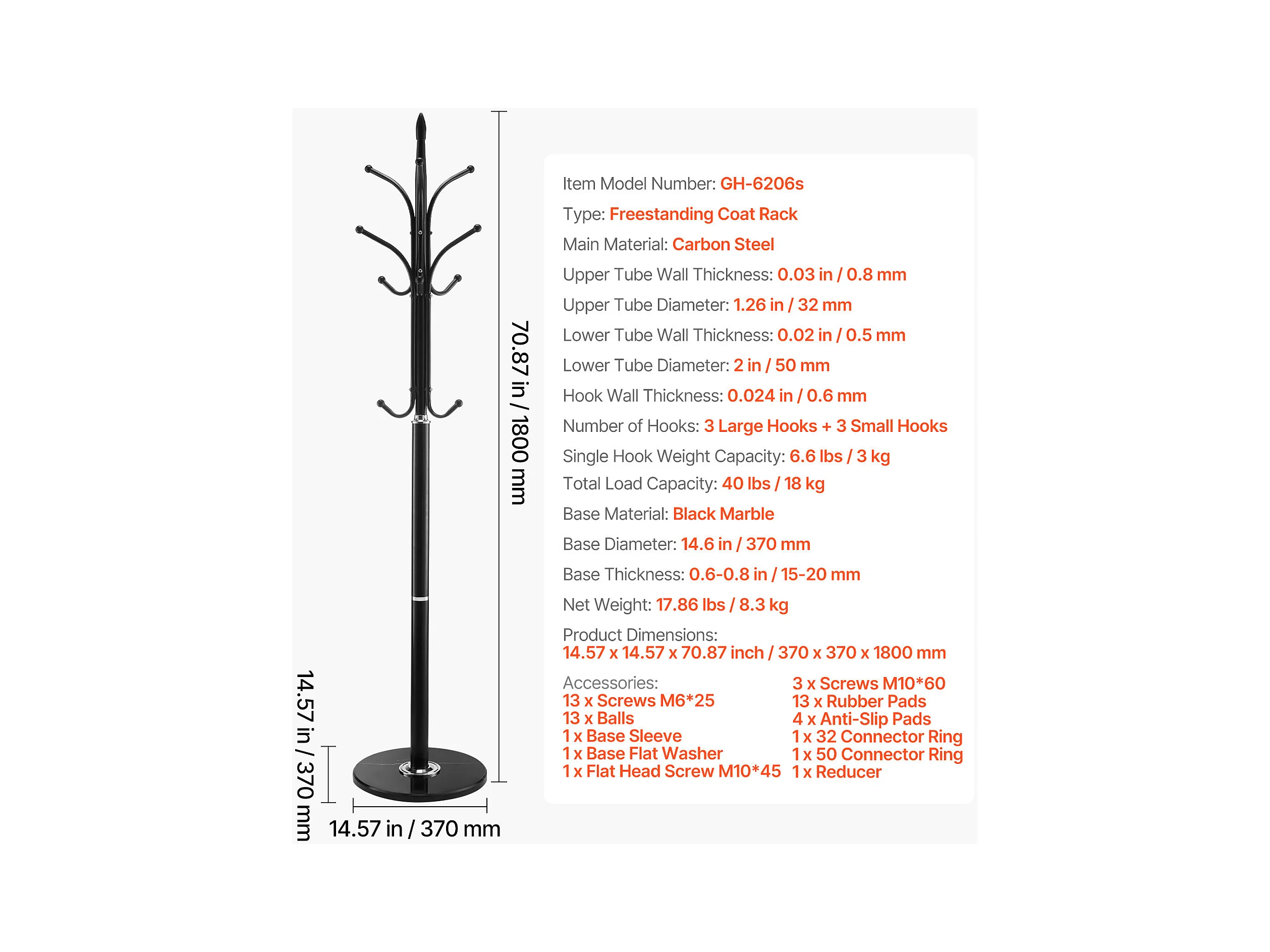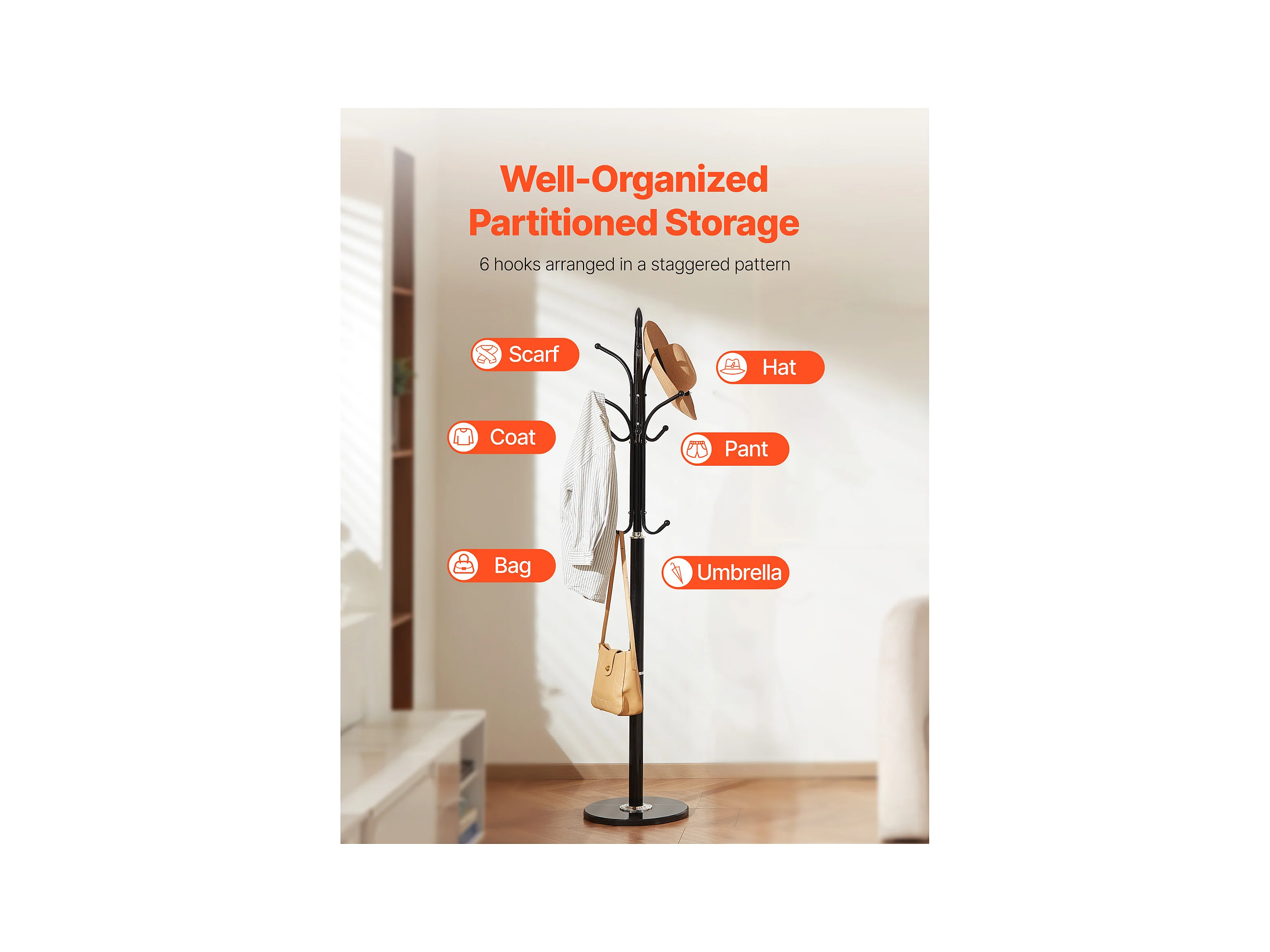 Perchero de Pie SucceBuy, Perchero para Ropa con Base de Mármol, 6 Ganchos, Perchero Metálico Independiente para Entrada, Dormitorio, Salón