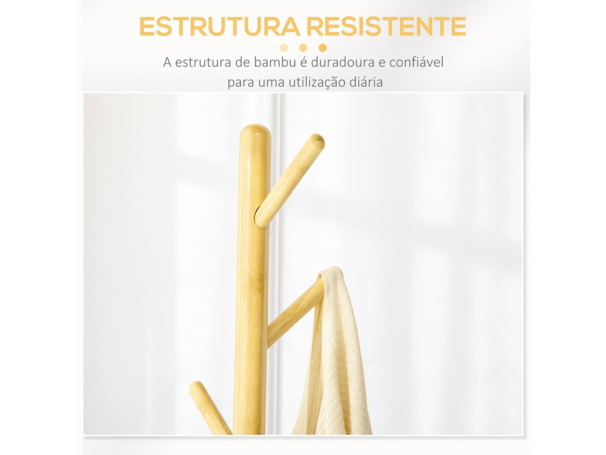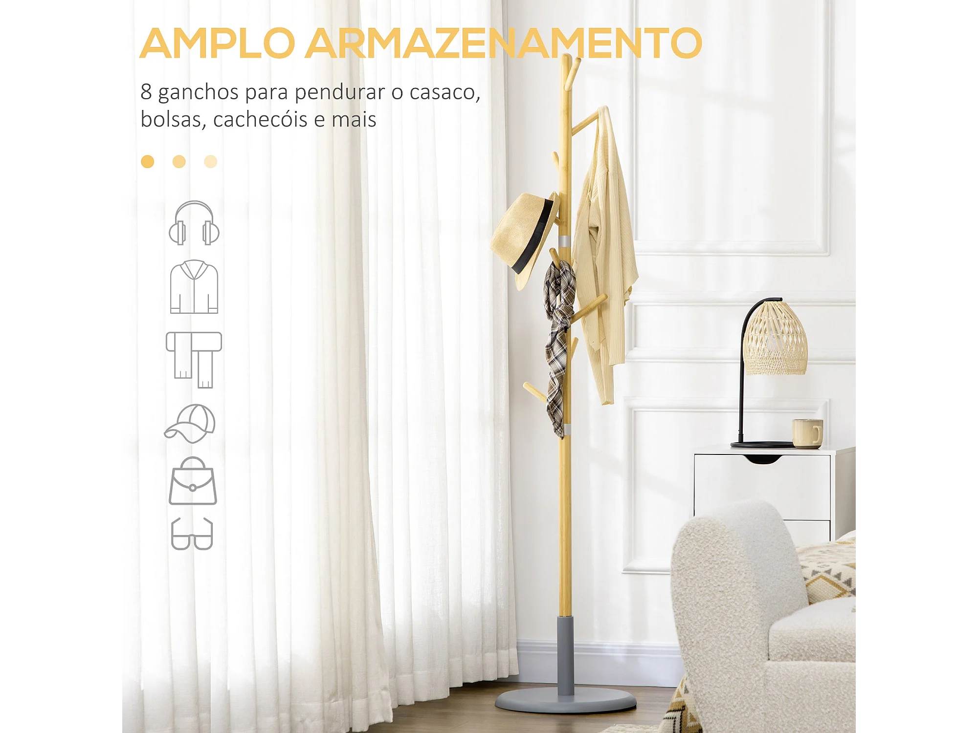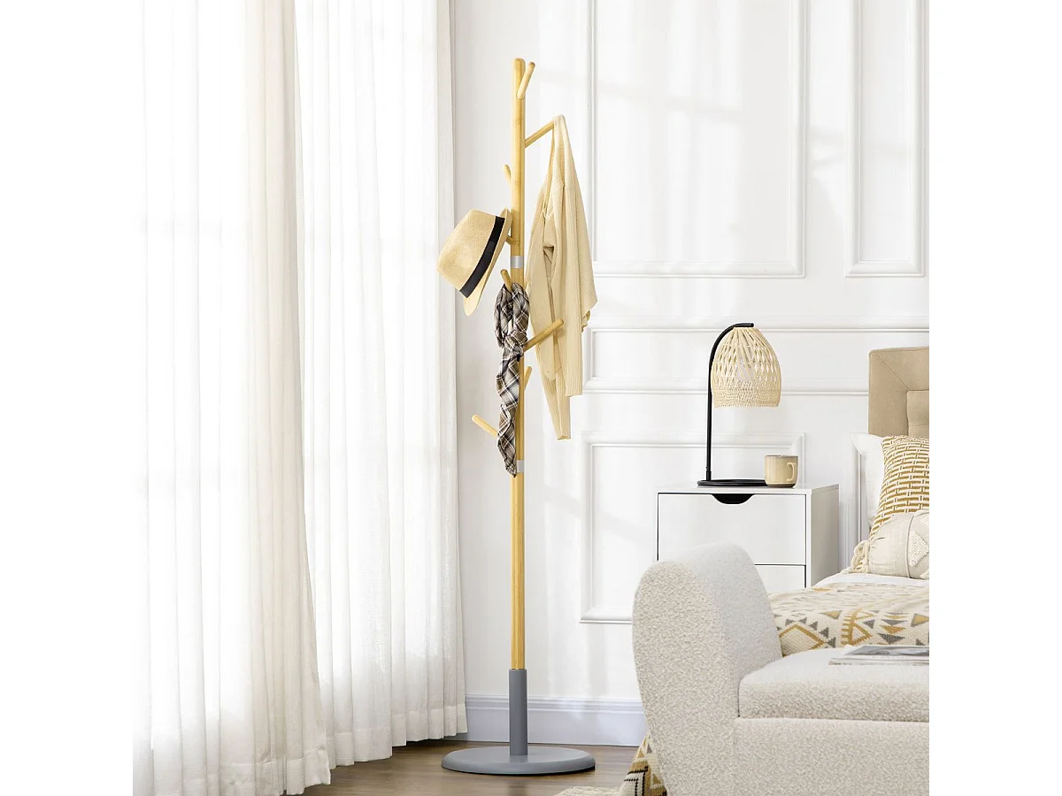 Perchero de pie Víctor Homcom 8 ganchos natural/gris Ø37,8x175,6 cm