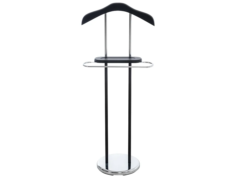 Perchero galán de noche con colgador en metal cromado y madera marrón MOC10016
