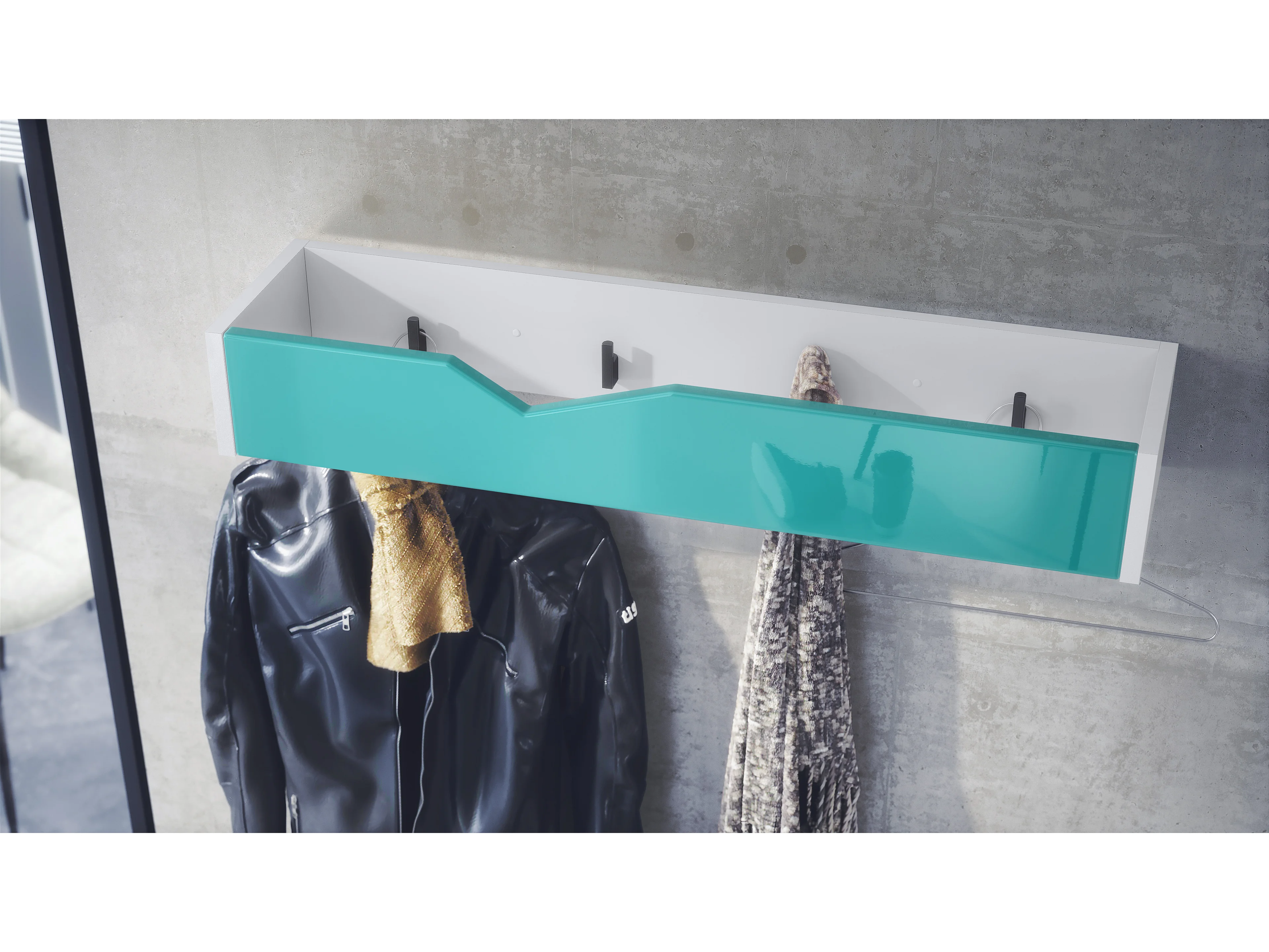 Perchero gancho de pared panel para colgar ropa Kolmio, cuerpo en blanco mate, frente en petróleo de alto brillo 83,5 x 12,5 x 21 cm