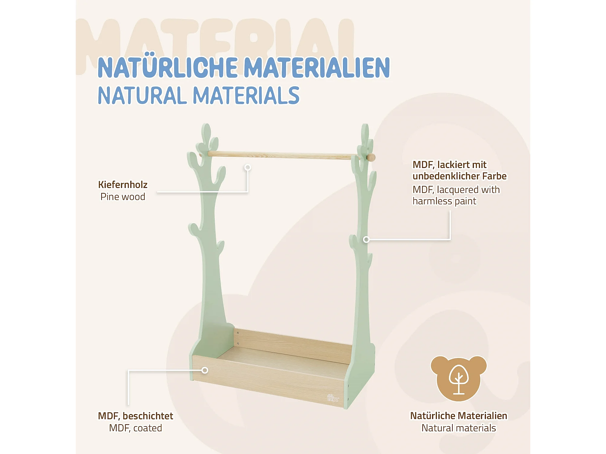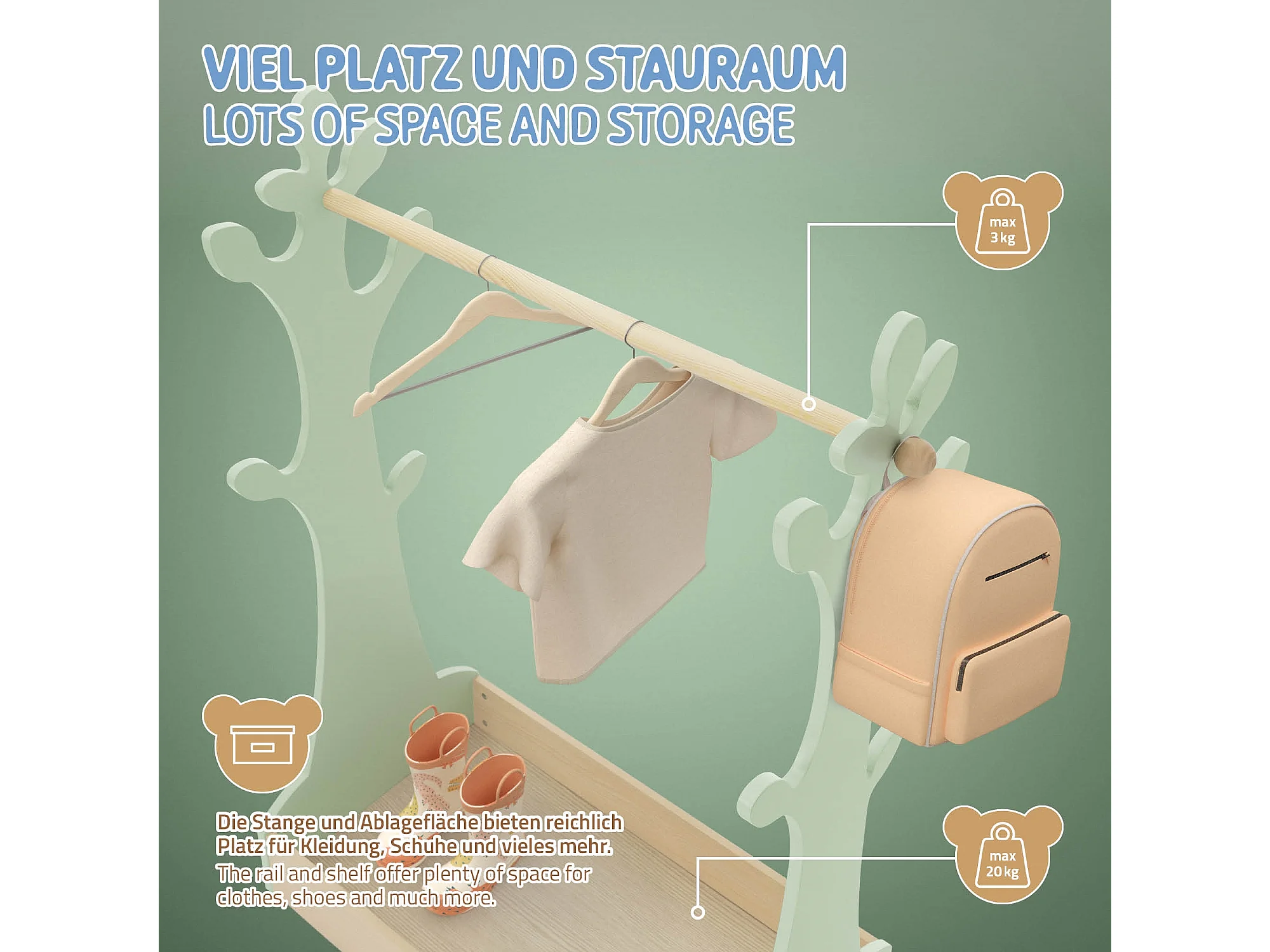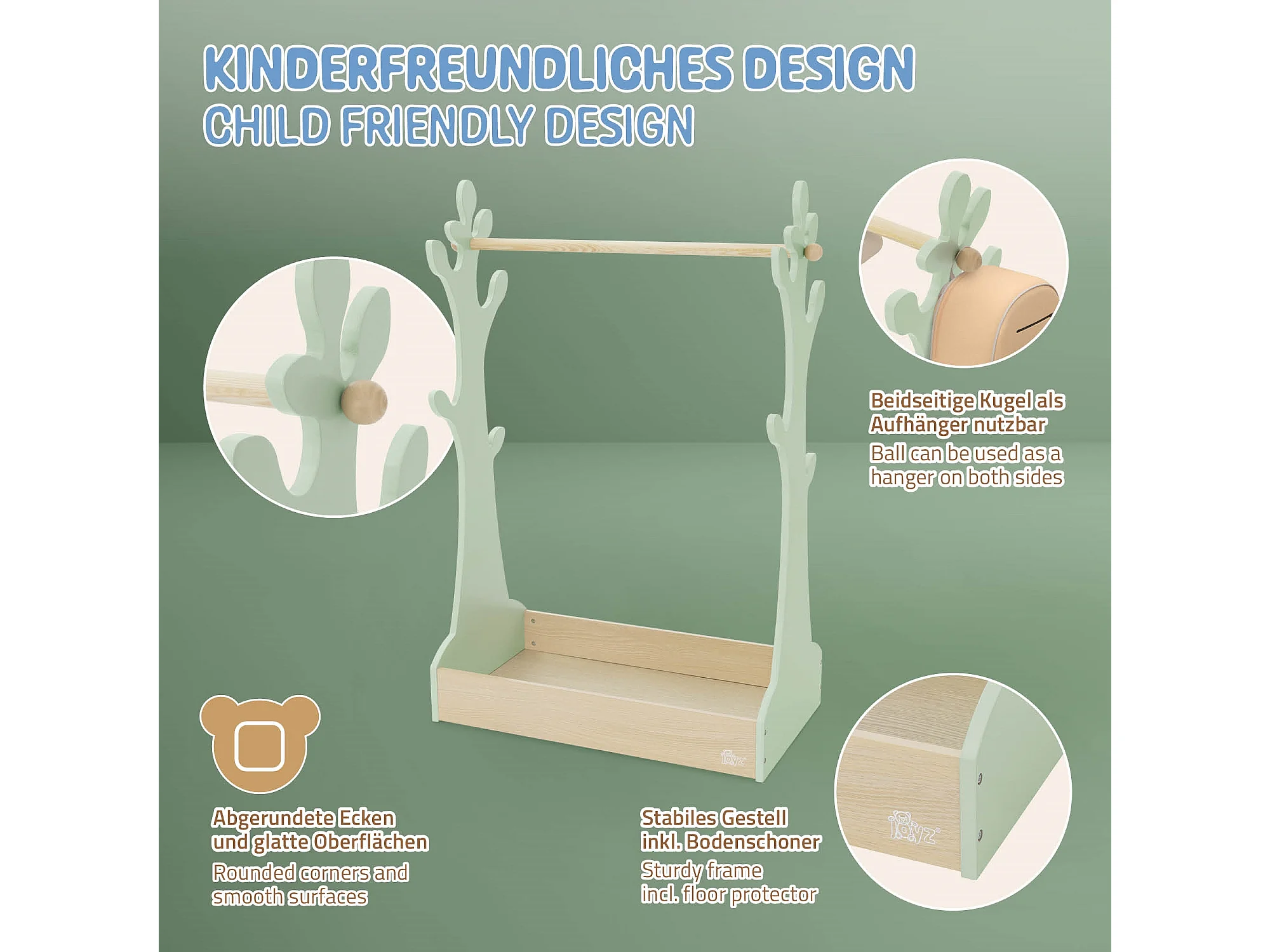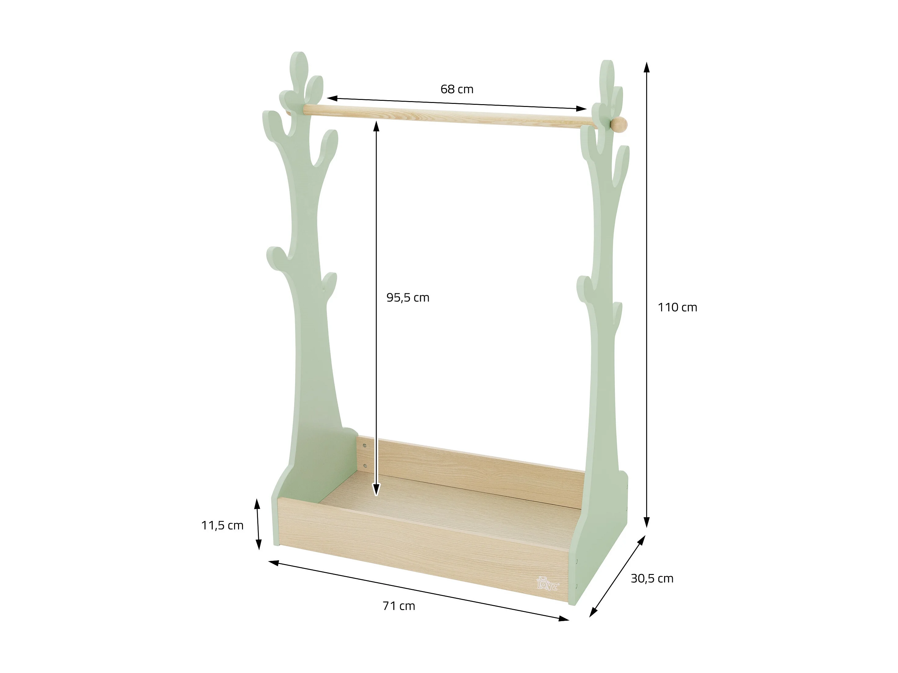 Perchero infantil de pie con balda barra de colgar madera árbol verde-naturaleza