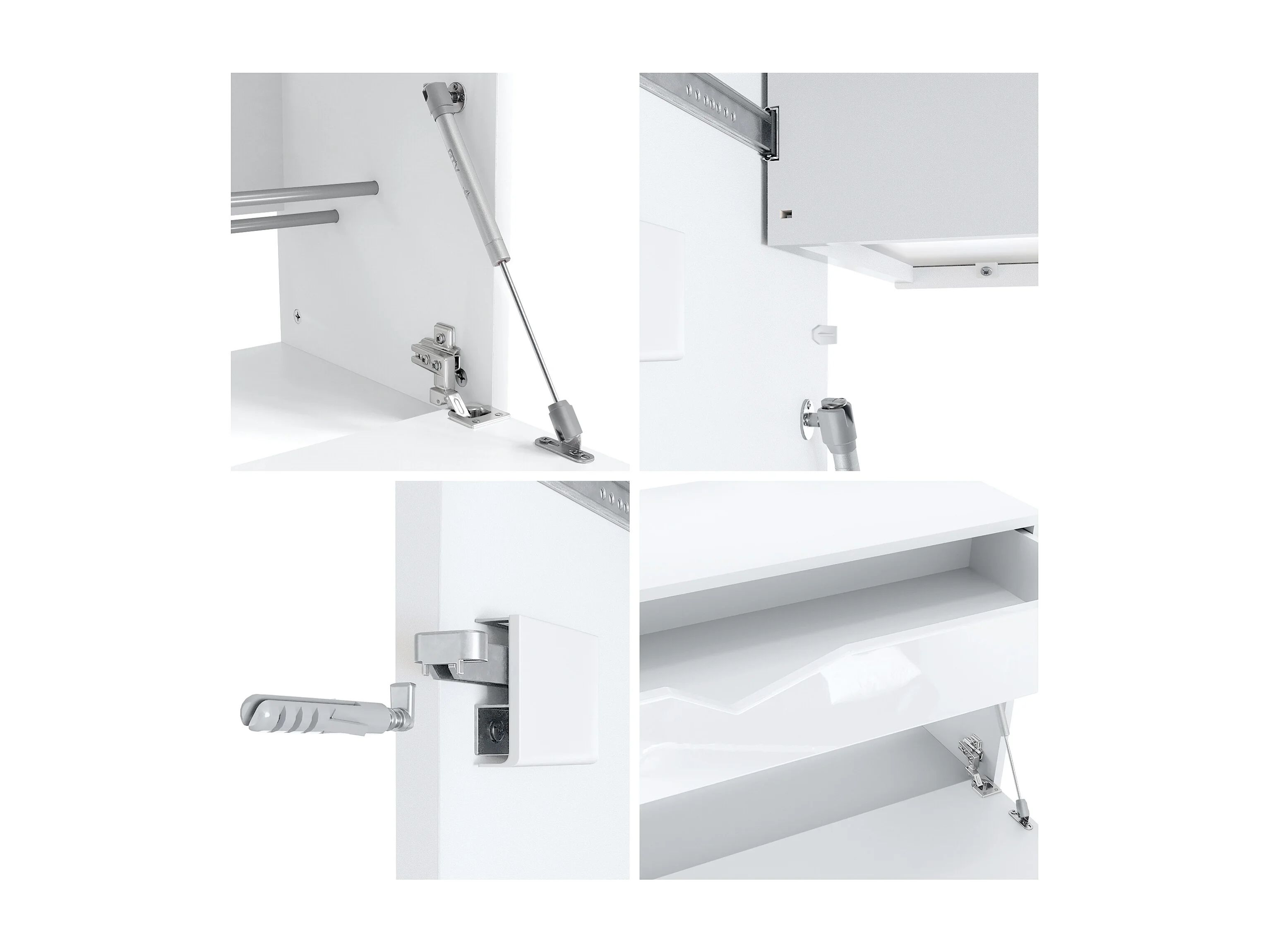 Vladon Mueble recibidor Malea, Mueble de entrada compuesto por 1 Zapatero colgante, 1 Espejo de pared y 2 Percheros, Blanco mate/Crema de alto brillo