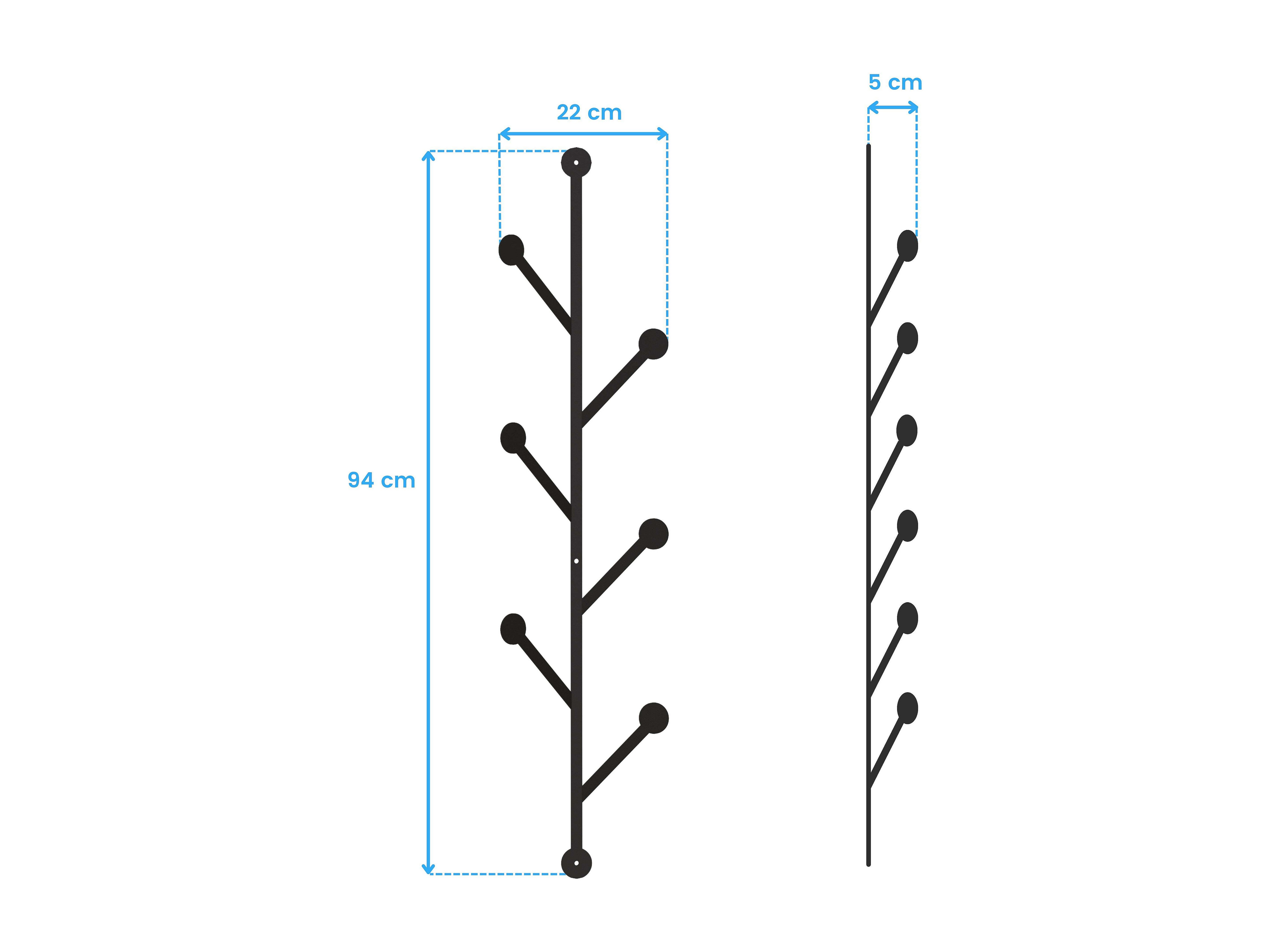 Perchero Dpasin, Perchas, Percha multiusos, Perchero de pared, 22x5h94 cm, Negro