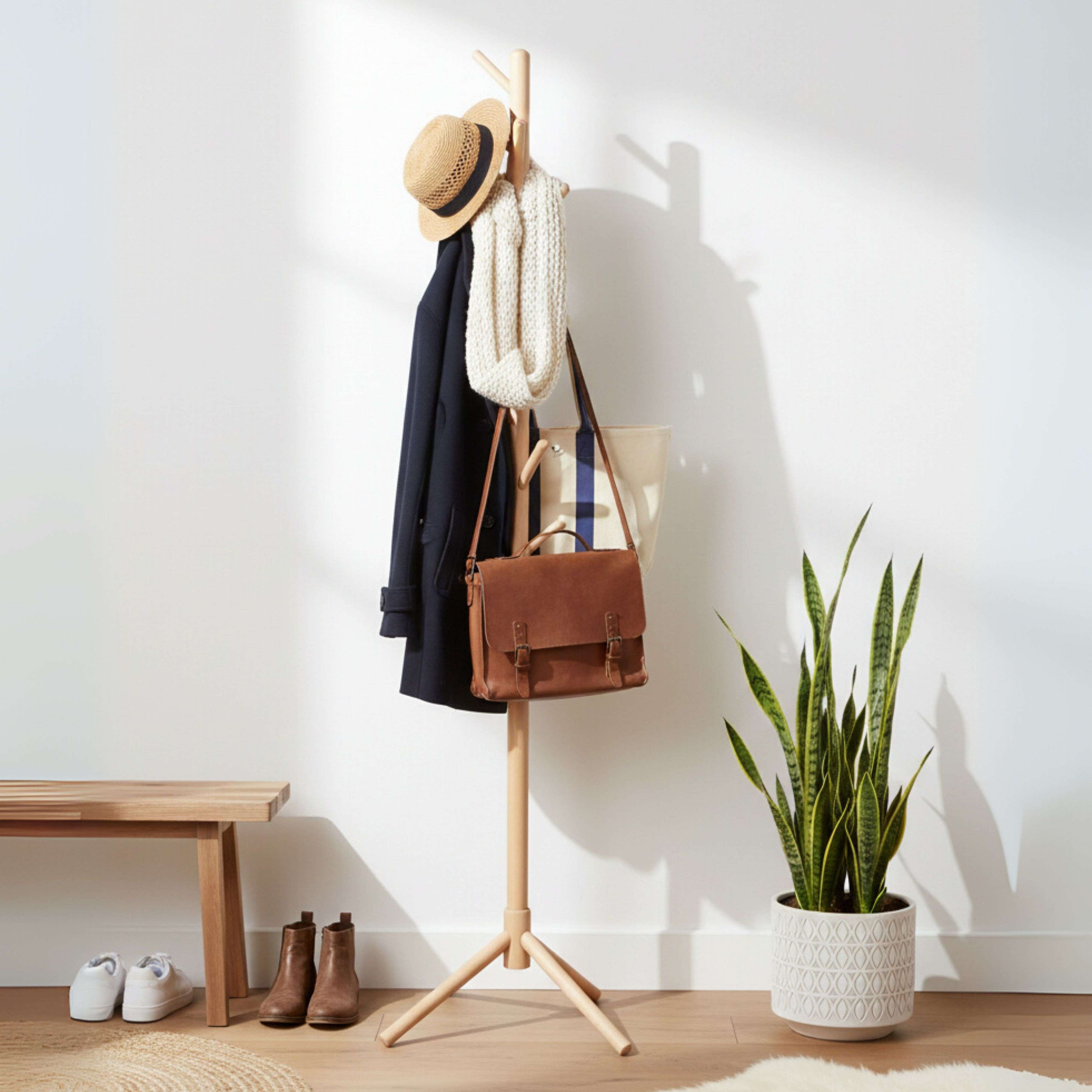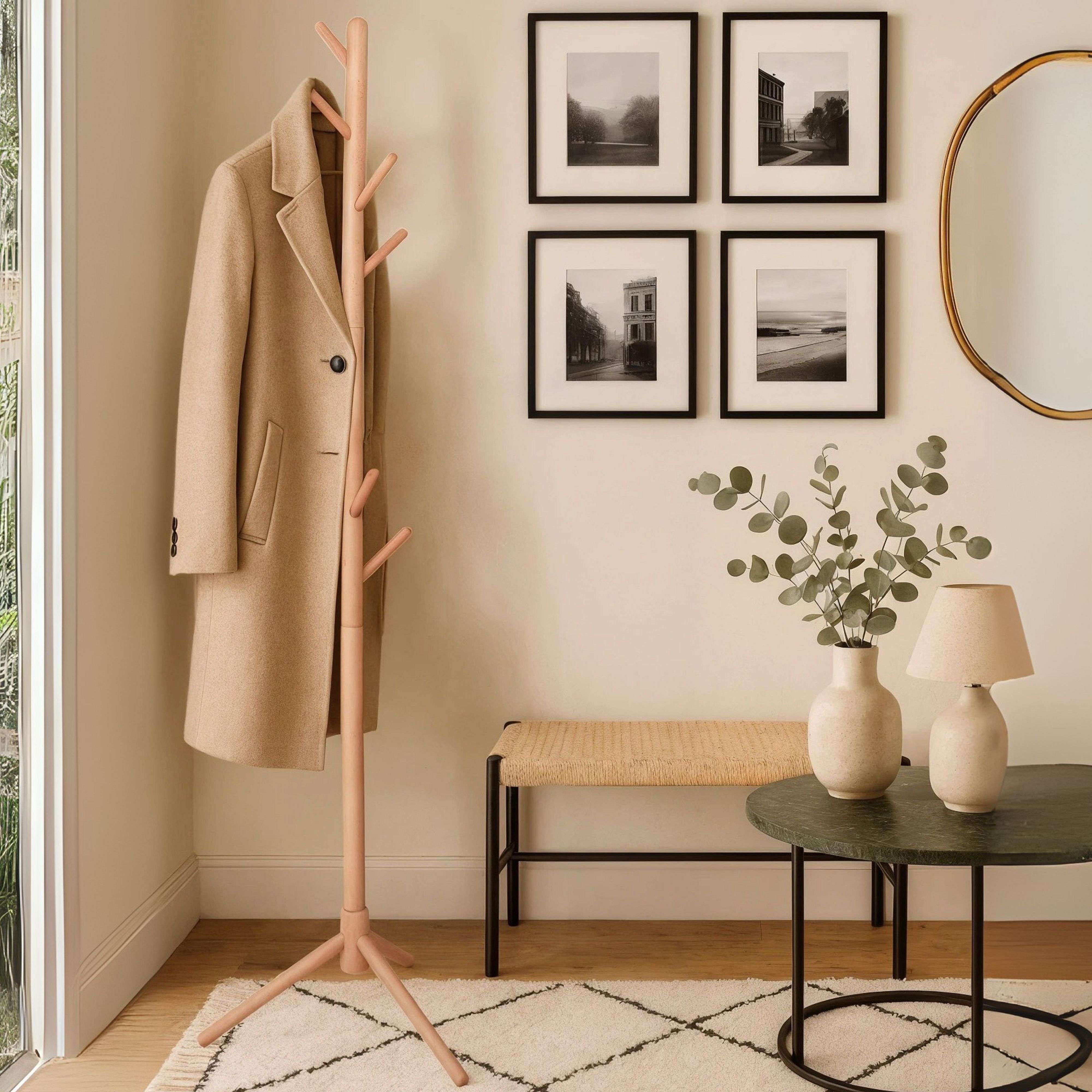 Perchero Reki 8 Colgadores Madera Haya Roble 44x172x44 cm