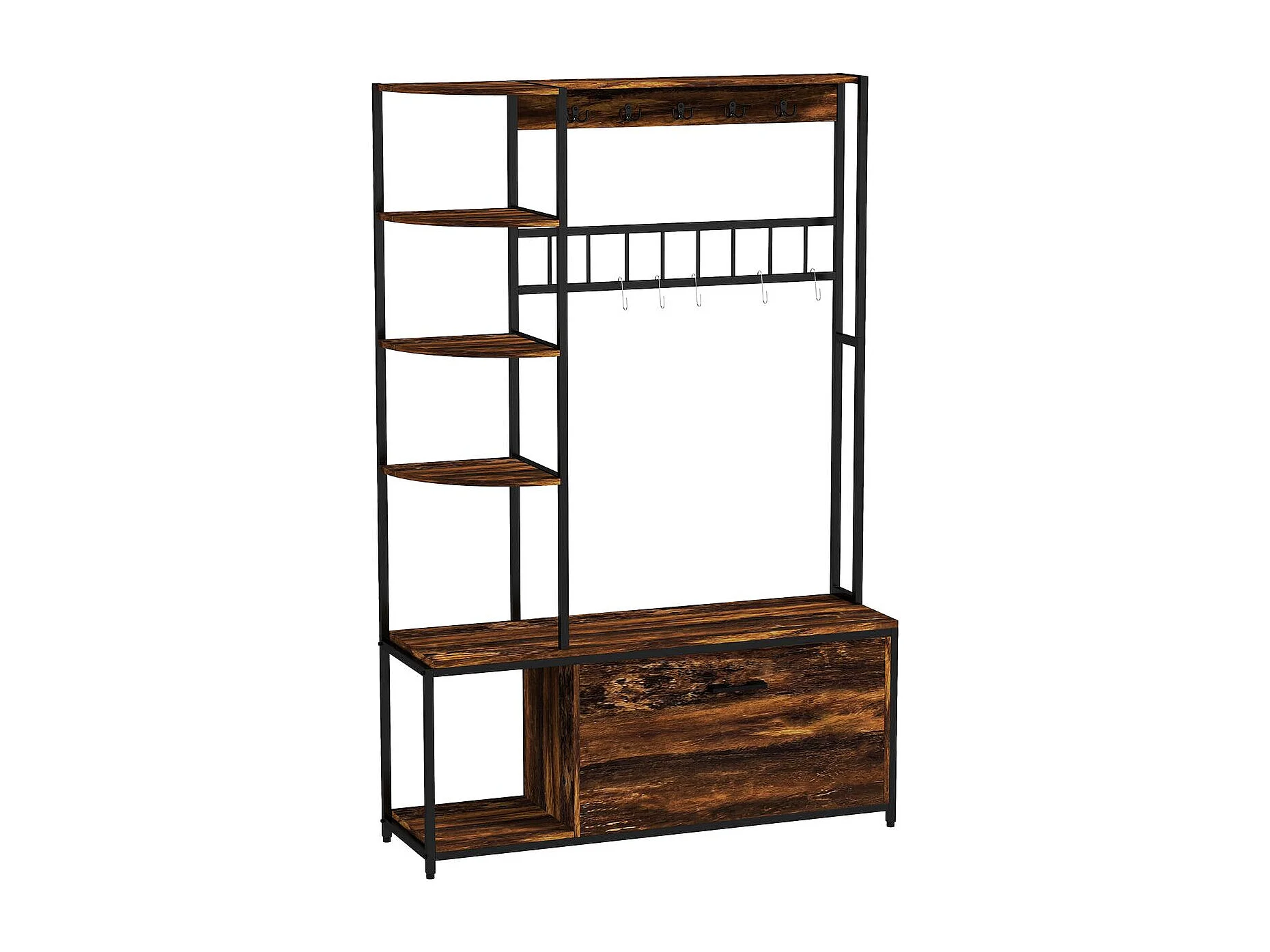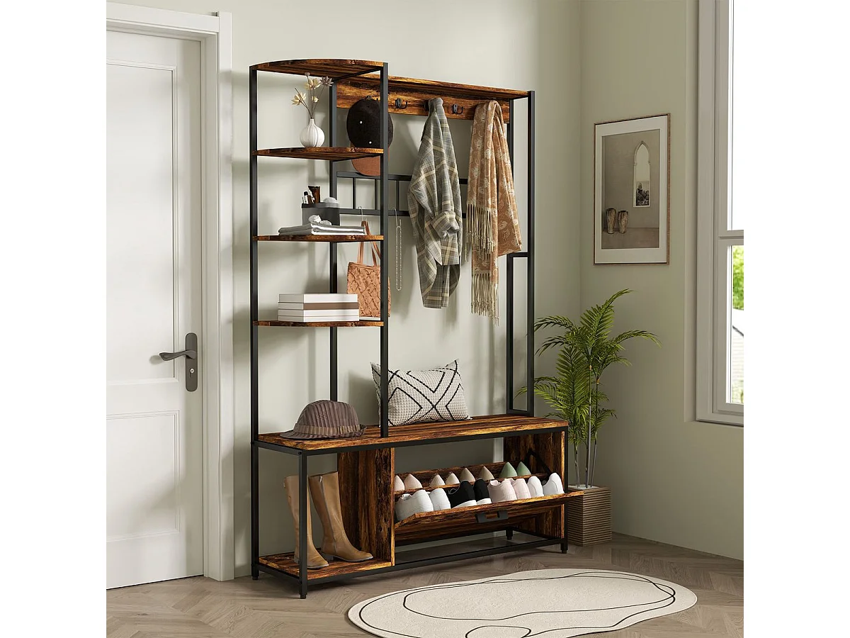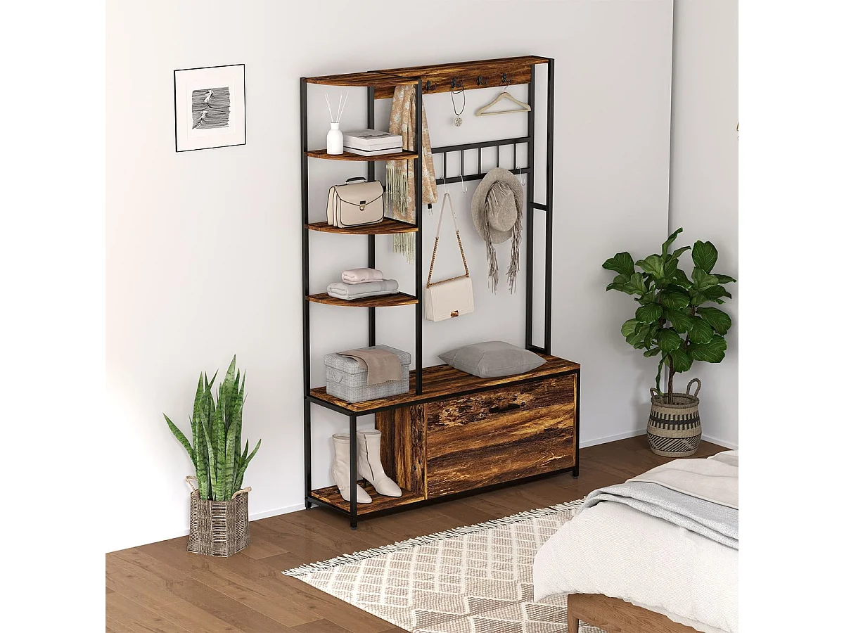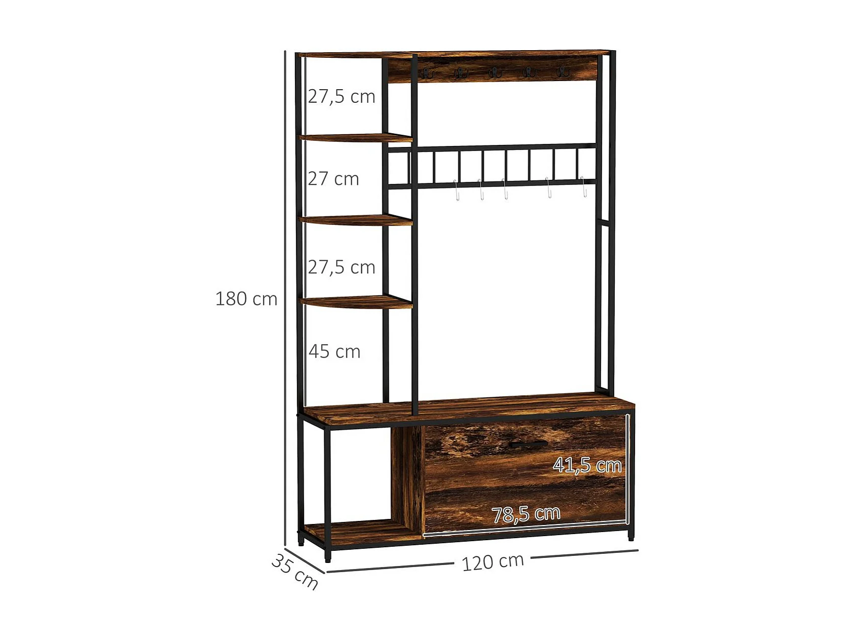 Perchero zapatero Prisma Homcom puerta abatible con estantes y ganchos marrón oscuro 180x120x35 cm