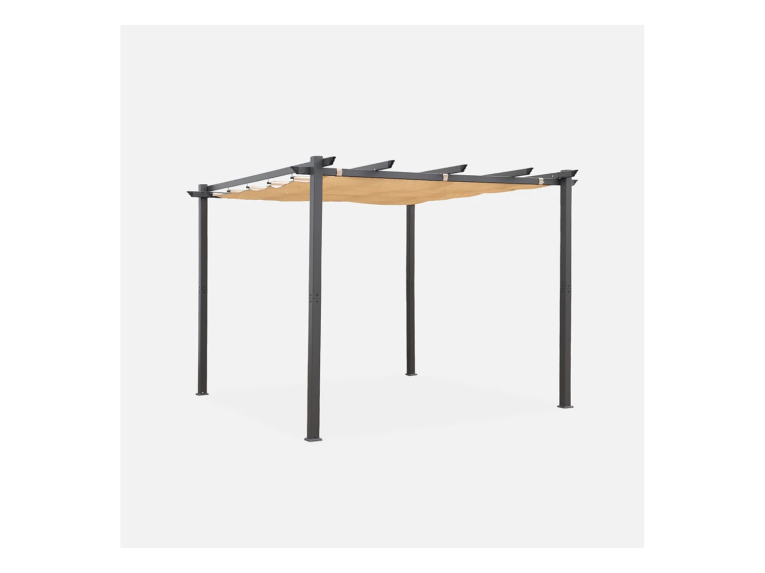Pérgola independiente 3 × 3m CASSIS beige estructura de aluminio