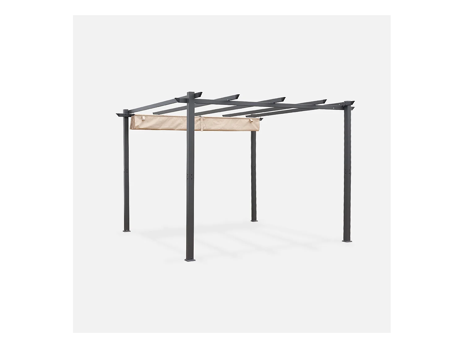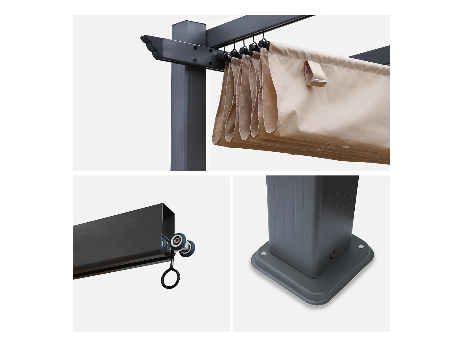 Pergola, aluminio, 3x3m, tela deslizante beige