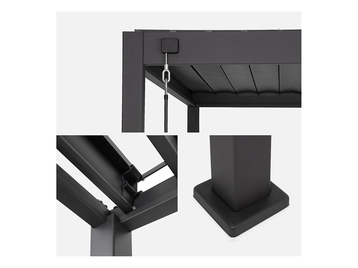 Pérgola bioclimática de aluminio 3x4m + 3 persianas de 100cm antracita