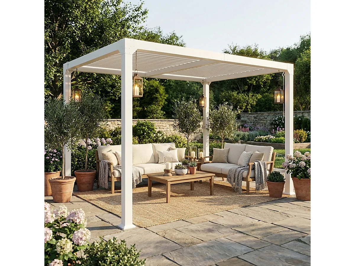 Pérgola bioclimática 3x4 m para jardín de aluminio manual Trinidad - Blanco
