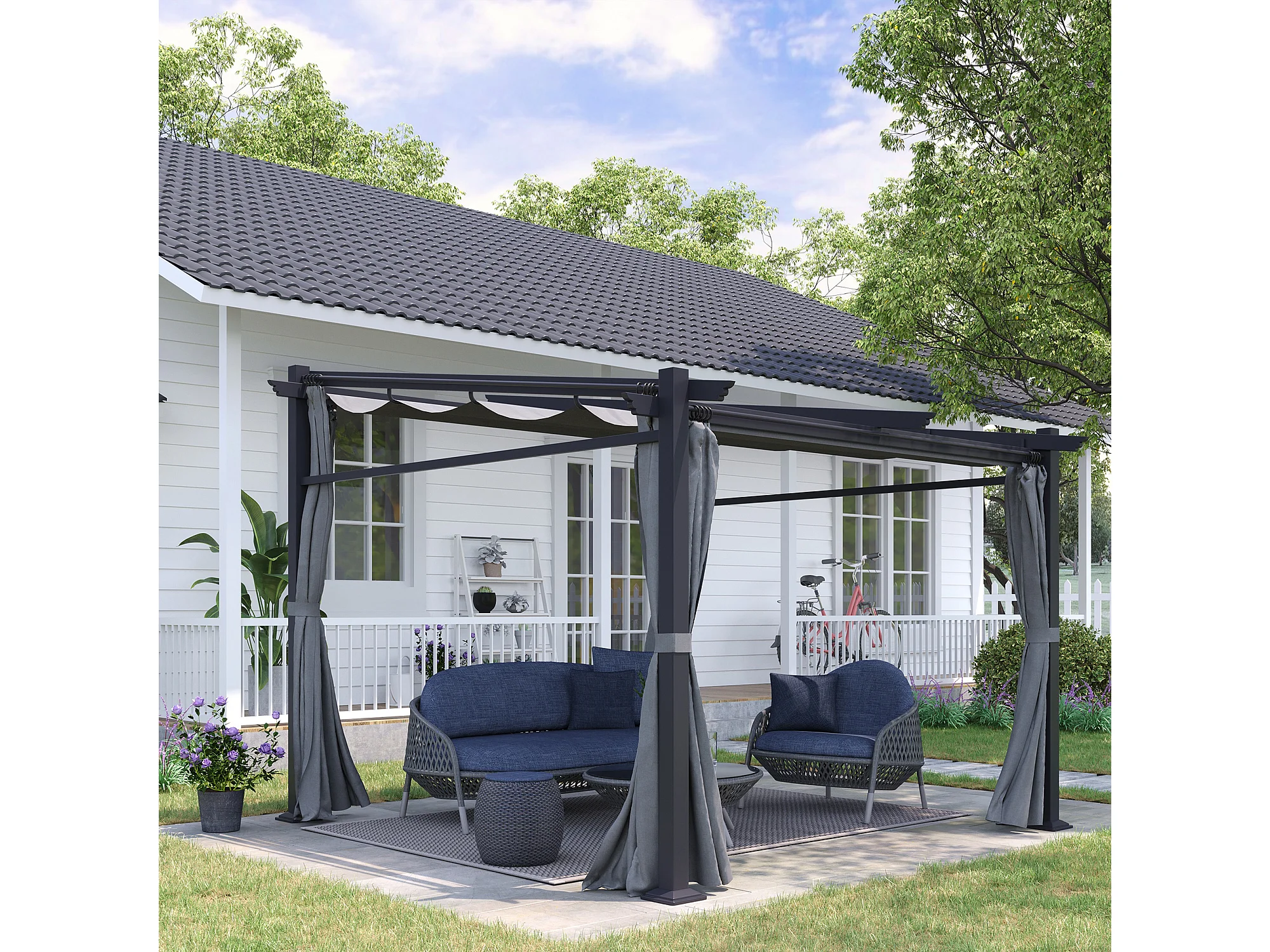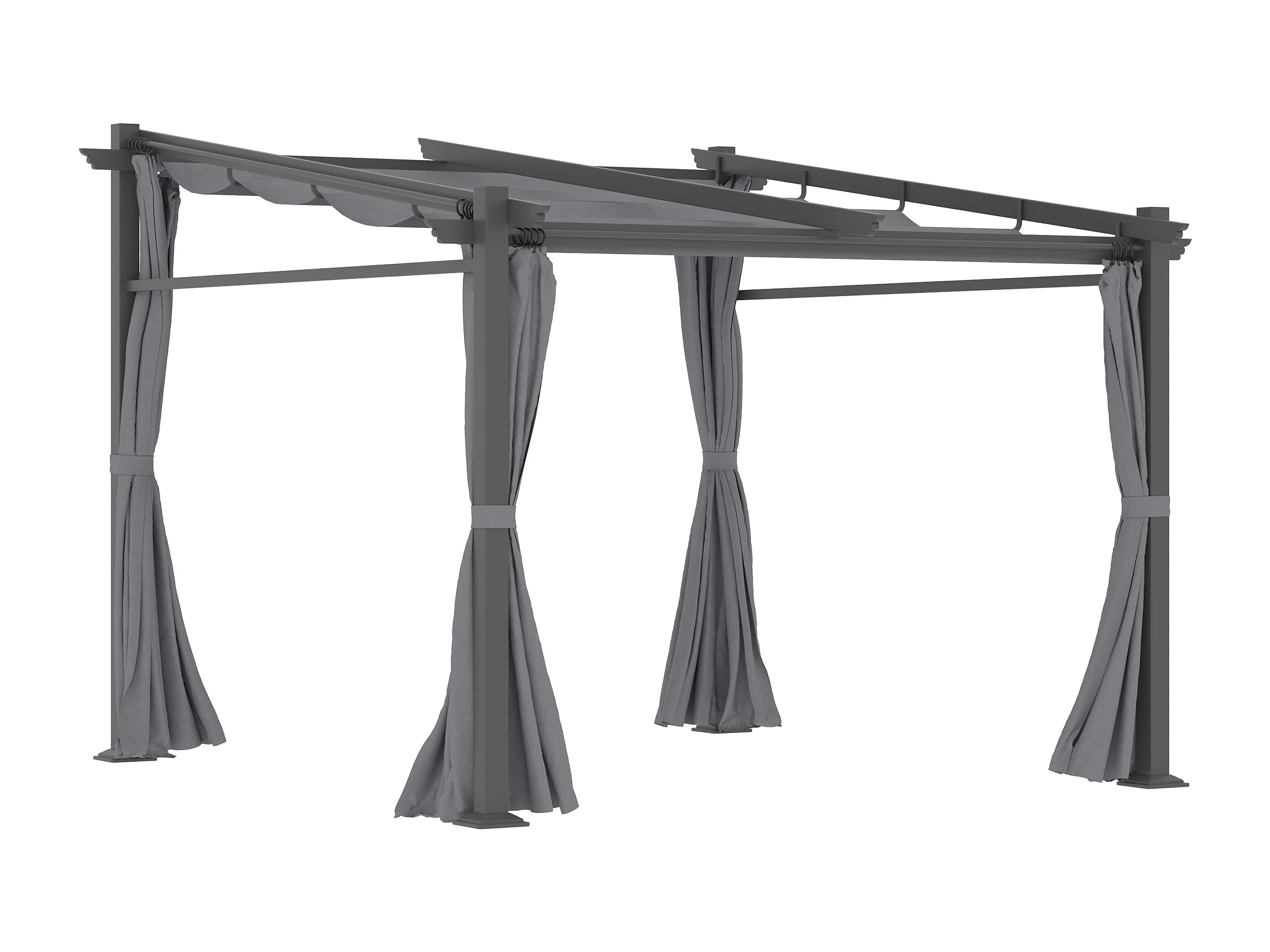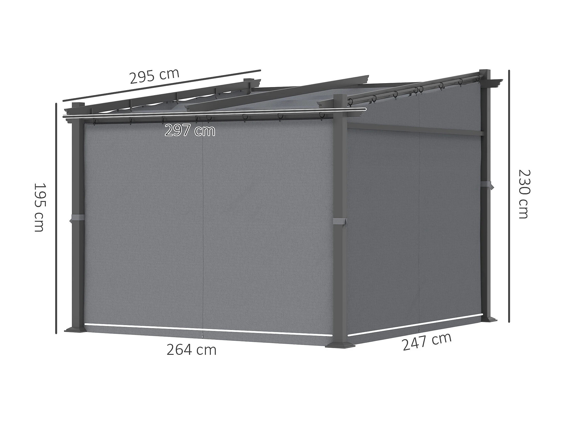 Pérgola con techo retráctil, estructura de acero, poliéster, gris oscuro (297x295x230cm)